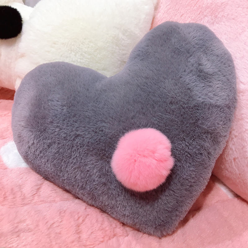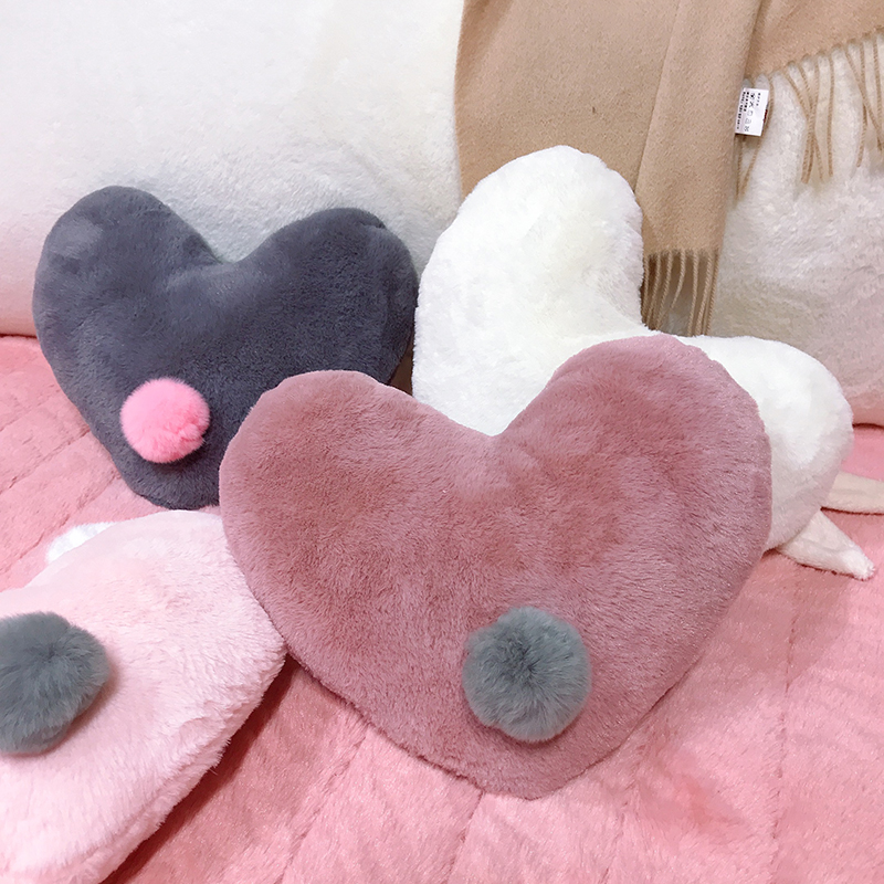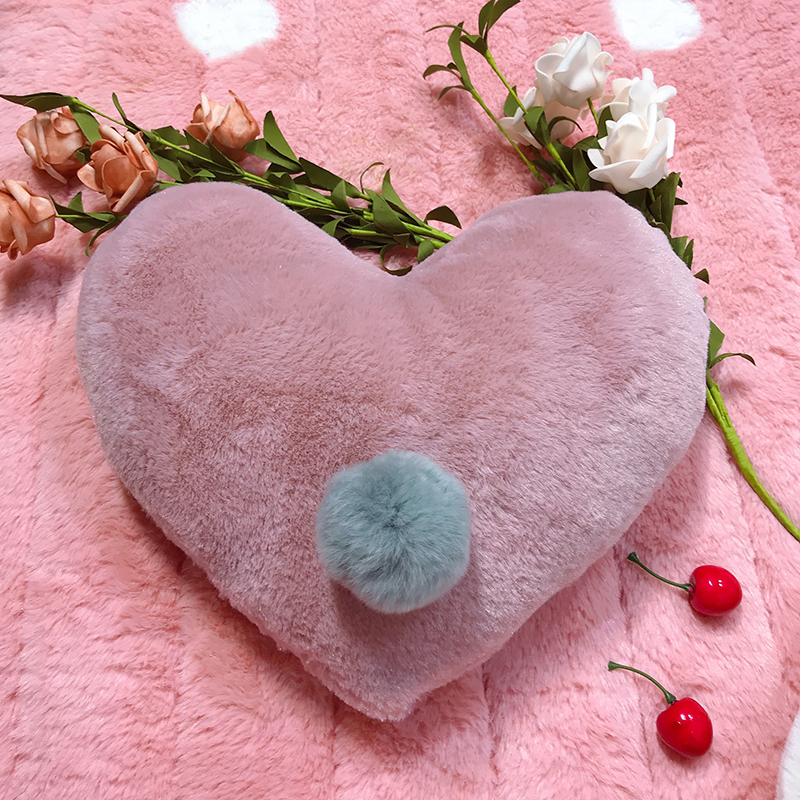 ins風兔絨愛心抱枕兒童可愛心形毛球靠墊家居小擺件 含芯1入