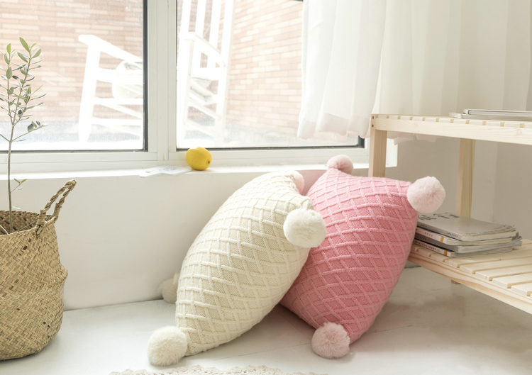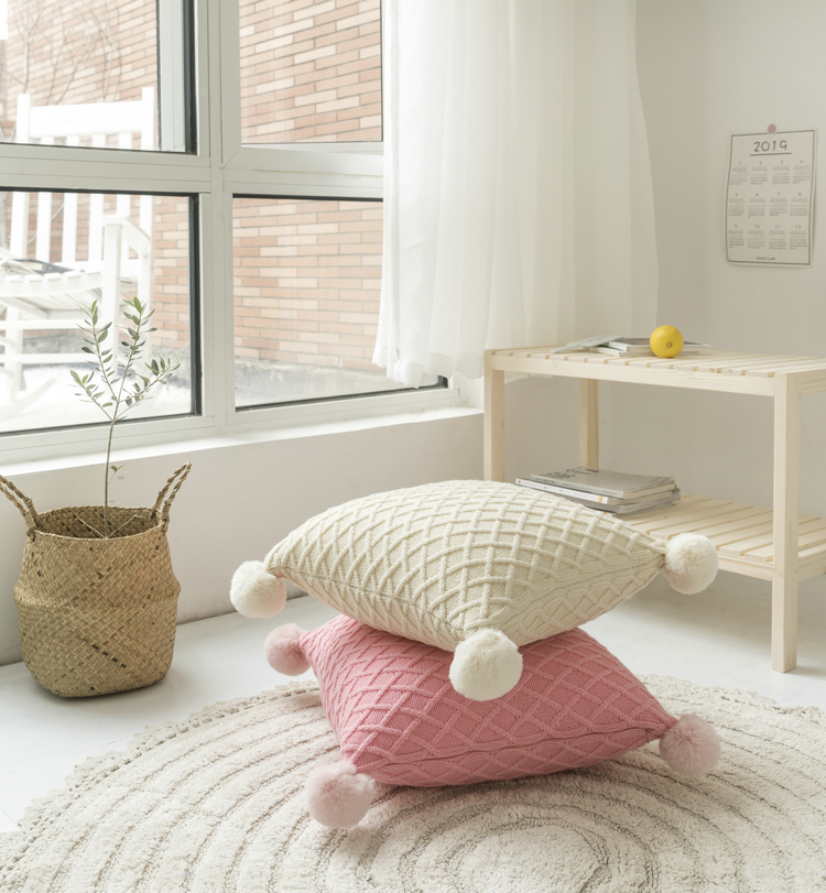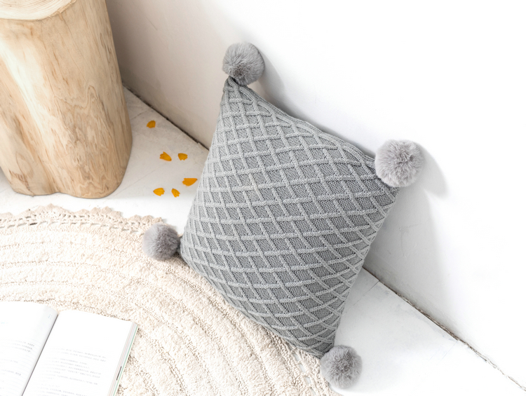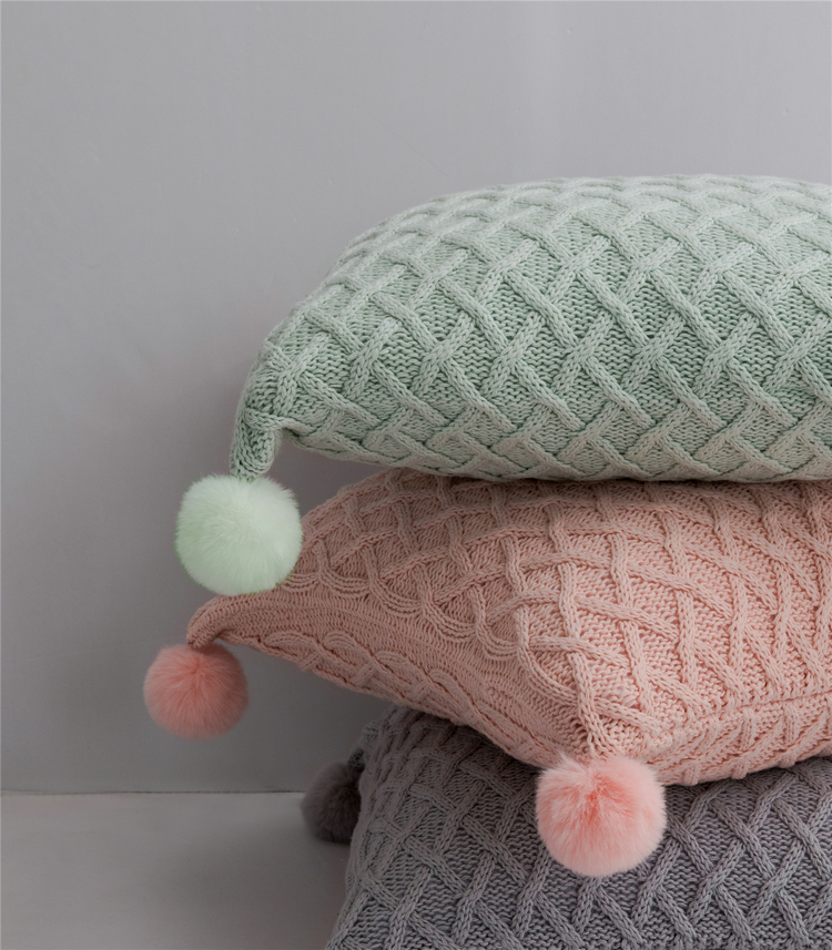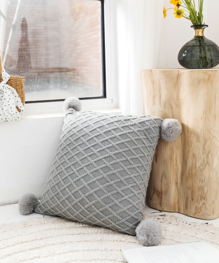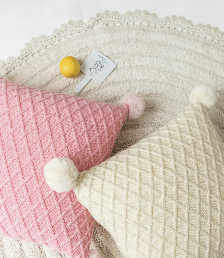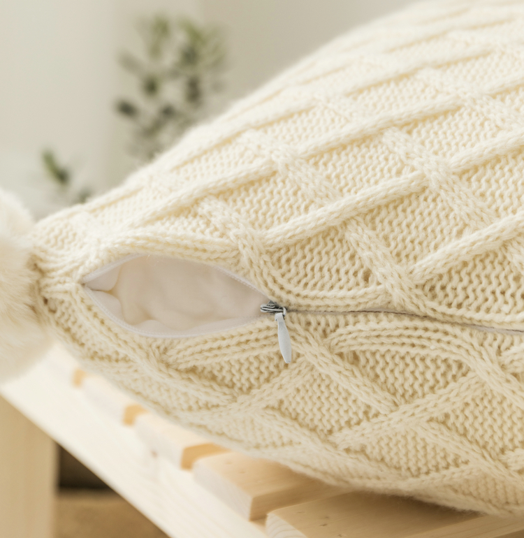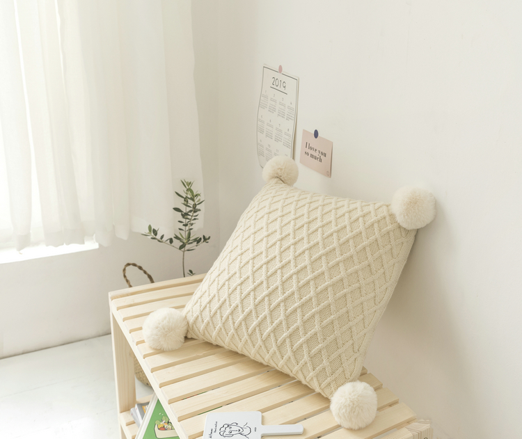 針織球球抱枕 沙發靠墊 毛線編織毛球抱枕靠枕含芯可拆洗1入