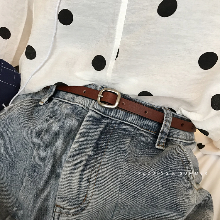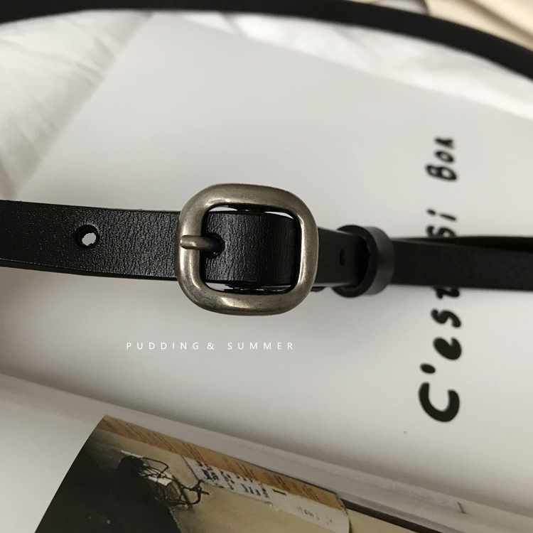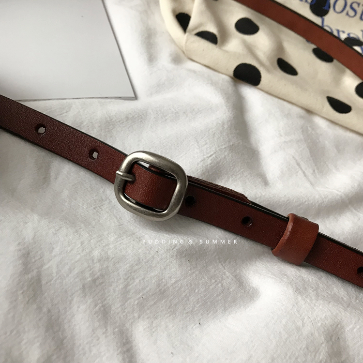 [布丁和夏天] 女士真皮細腰帶牛皮小皮帶韓版連衣裙襯衫綁帶褲帶1入