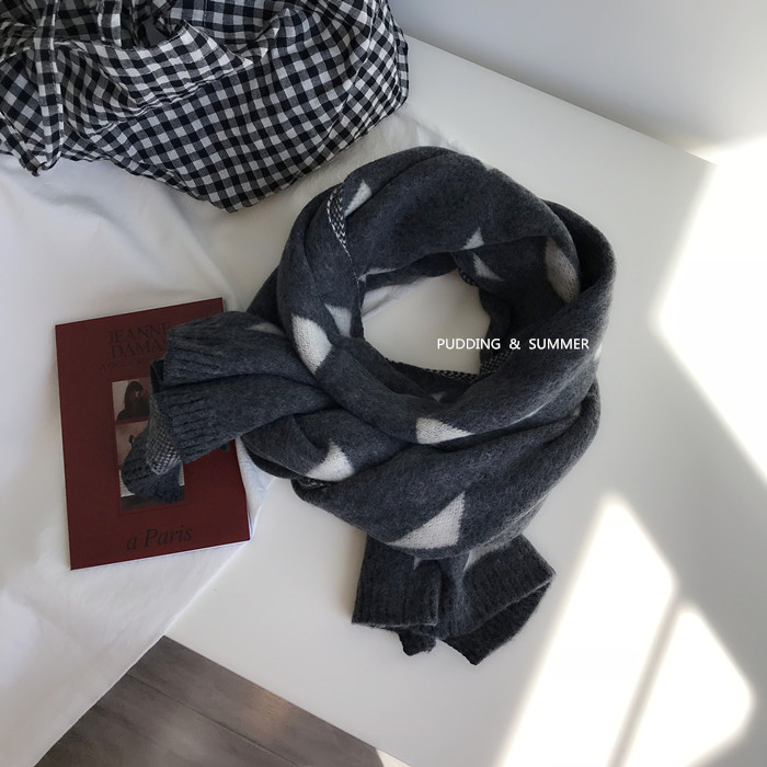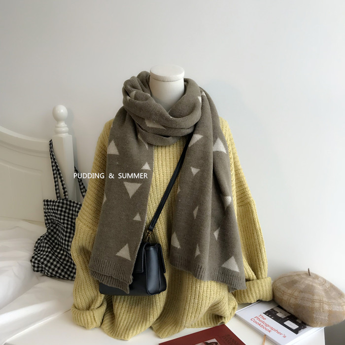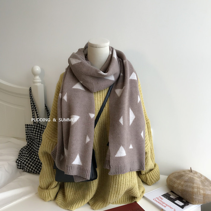 韓風ns小清新圍巾韓版秋冬日系保暖學生針織毛線圍脖三角形圖案1入