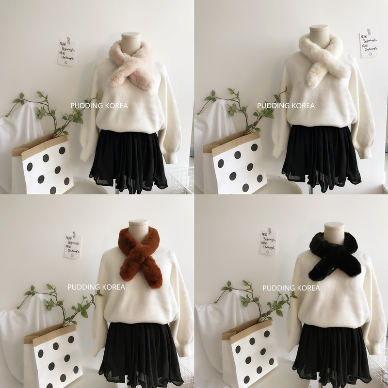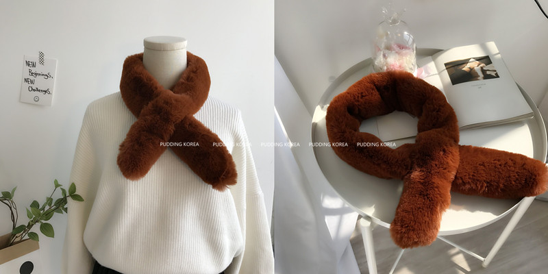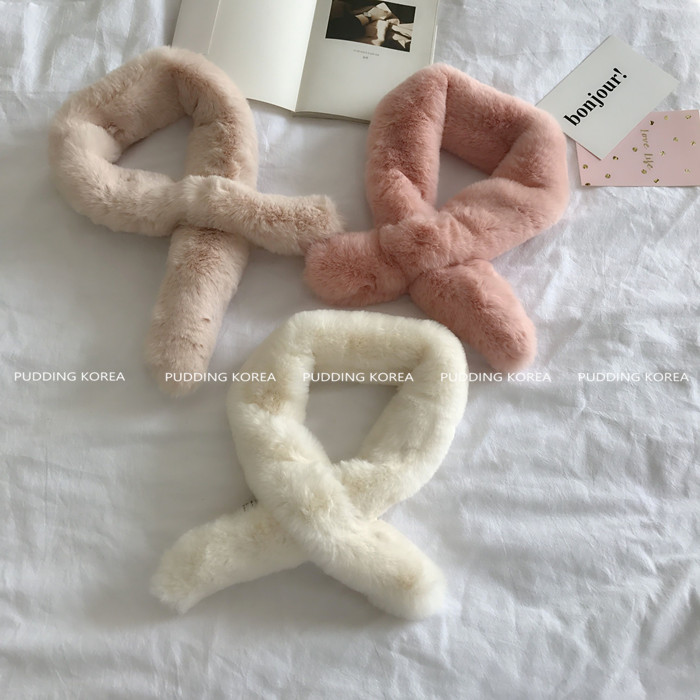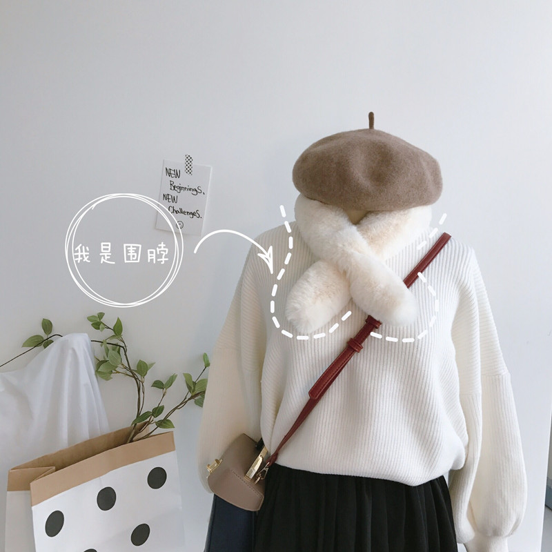 軟妹bi備敲舒服的柔軟交叉毛絨小圍巾一枚新款仿兔毛領圍脖女1入