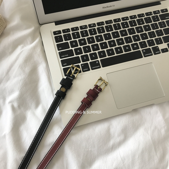 韓版新款2層牛皮真皮腰帶細皮帶復古牛仔褲連衣裙綁帶裝飾帶女士1入