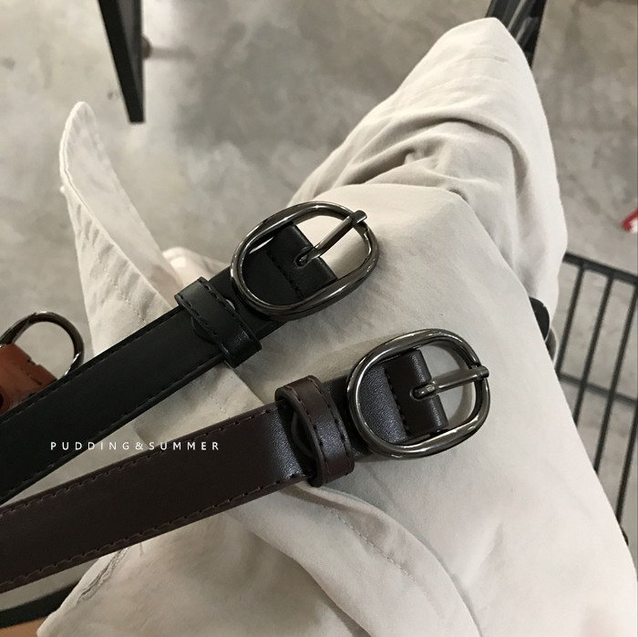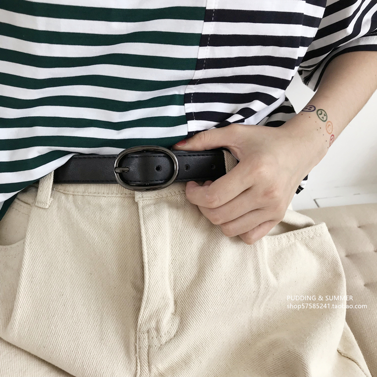 韓版新款腰帶黑色扣頭pu皮帶女士簡約學生流行復古橢圓褲帶潮1入
