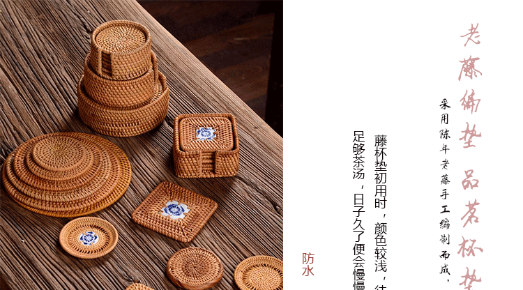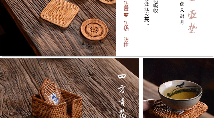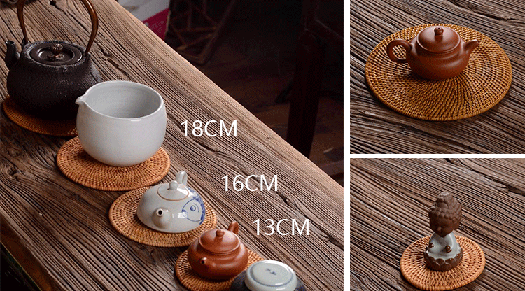 陳年老藤編 手工編制 功夫茶具 防水茶杯茶壺 杯墊 杯托隔熱墊1入