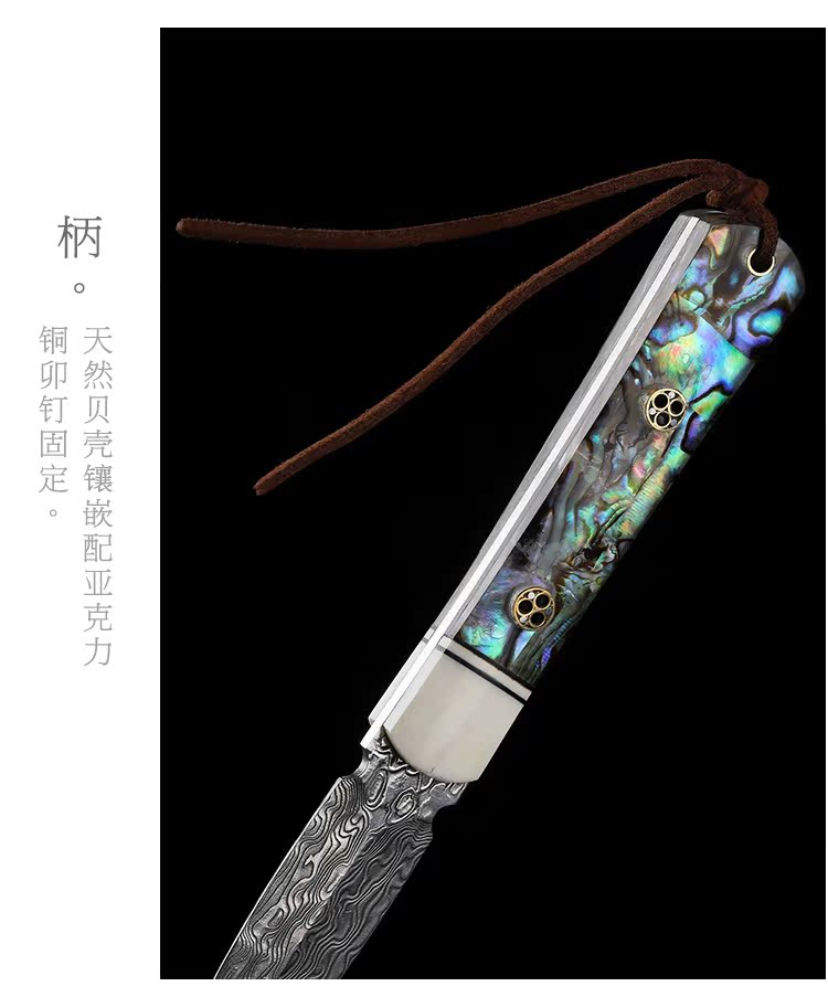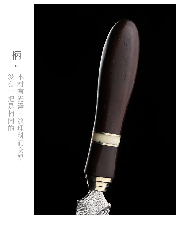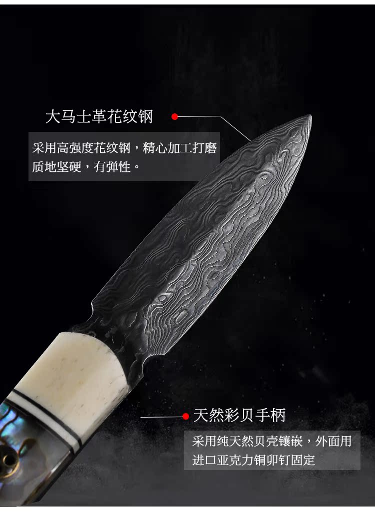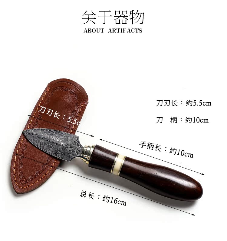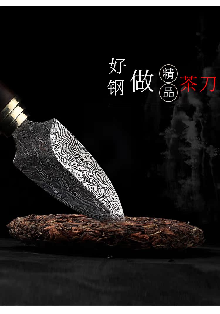 進口大馬士革花紋鋼 黑茶 普洱茶茶刀 茶針實木 彩貝茶具1入