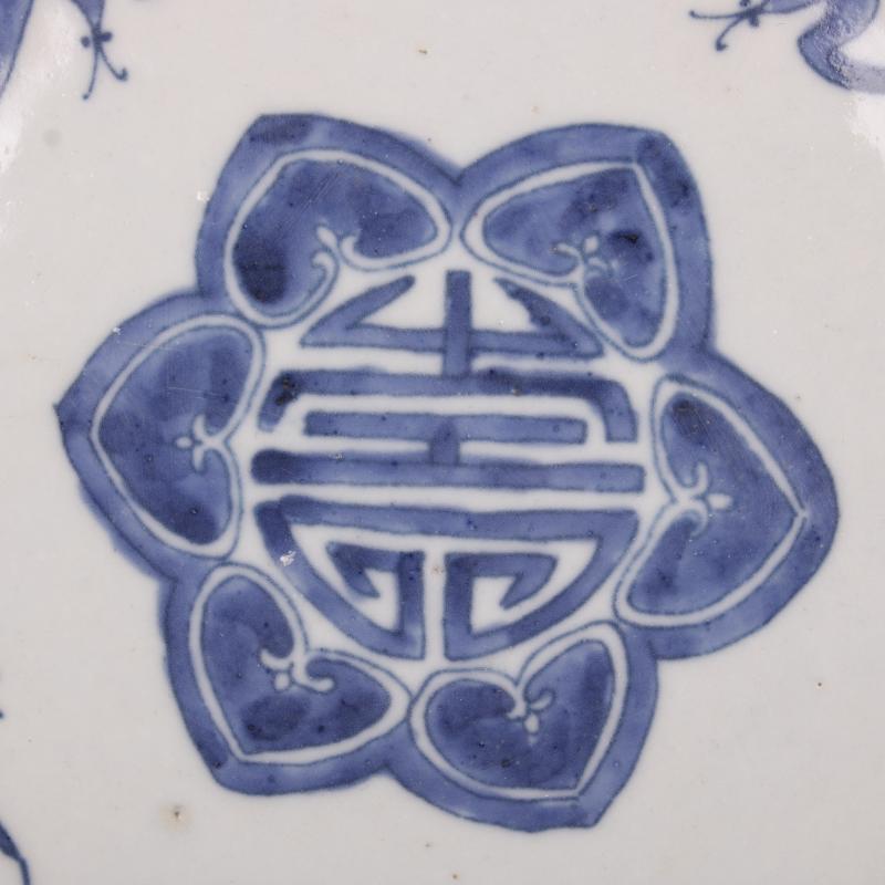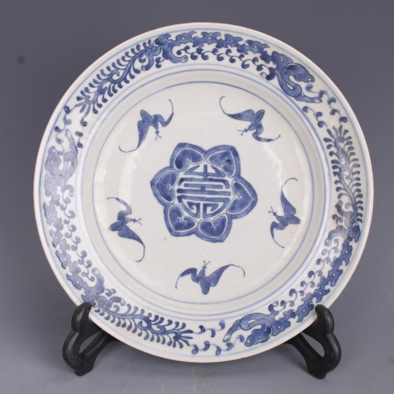 清康熙青花五福壽紋平盤仿古老貨瓷器家居博古架擺件古董古玩收藏1入