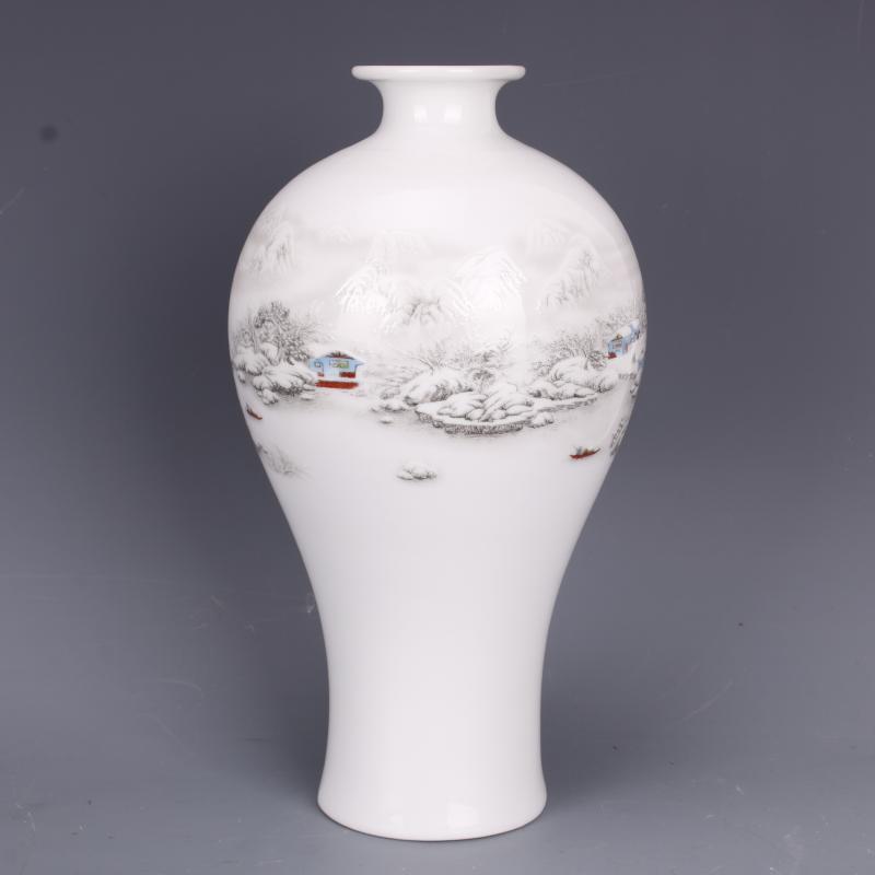 清乾隆薄胎粉彩雪景花紋梅瓶仿古工藝貼花瓷器家居裝飾中式擺件1入
