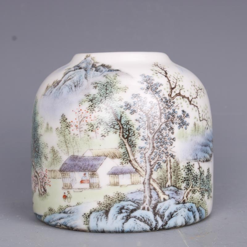 清光緒粉彩山水紋水洗仿古中式瓷器家居文房擺件古董古玩老貨收藏1入