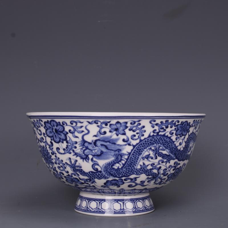 清乾隆青花穿花龍紋碗仿古工藝家居中式擺件古董古玩復古老貨收藏1入
