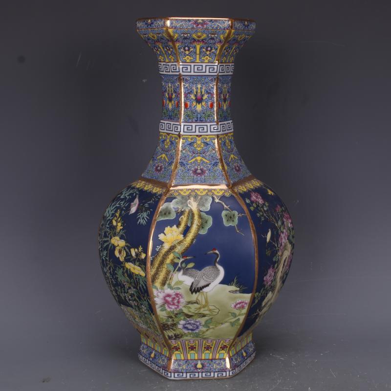 清乾隆描金琺瑯彩花鳥六方賞瓶仿古工藝品瓷器家居中式古玩擺件61入