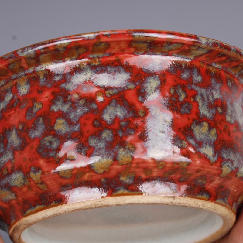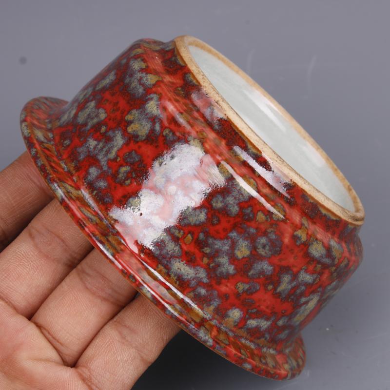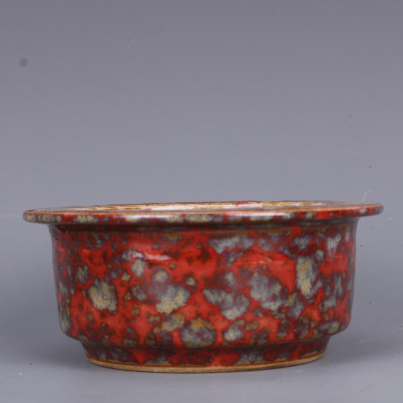 清乾隆窯變紅花釉水洗手工仿古工藝瓷器中式文房擺件古董古玩收藏1入