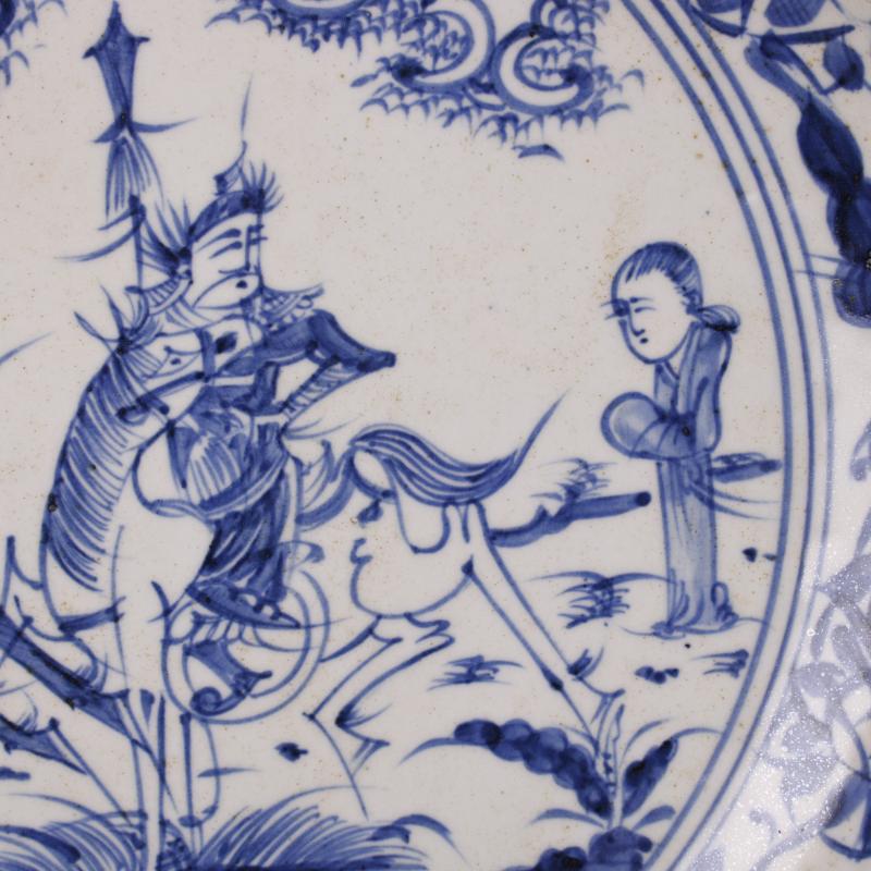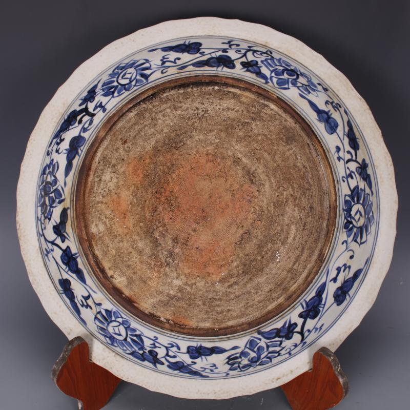 元青花人物葵口大盤手繪仿古老貨瓷器家居中式擺件古董古玩收藏1入