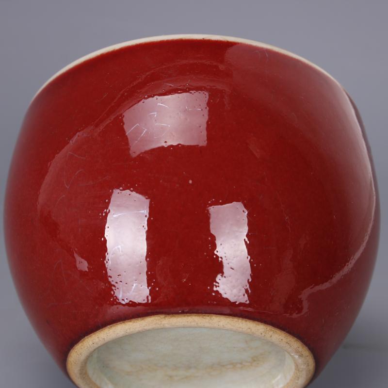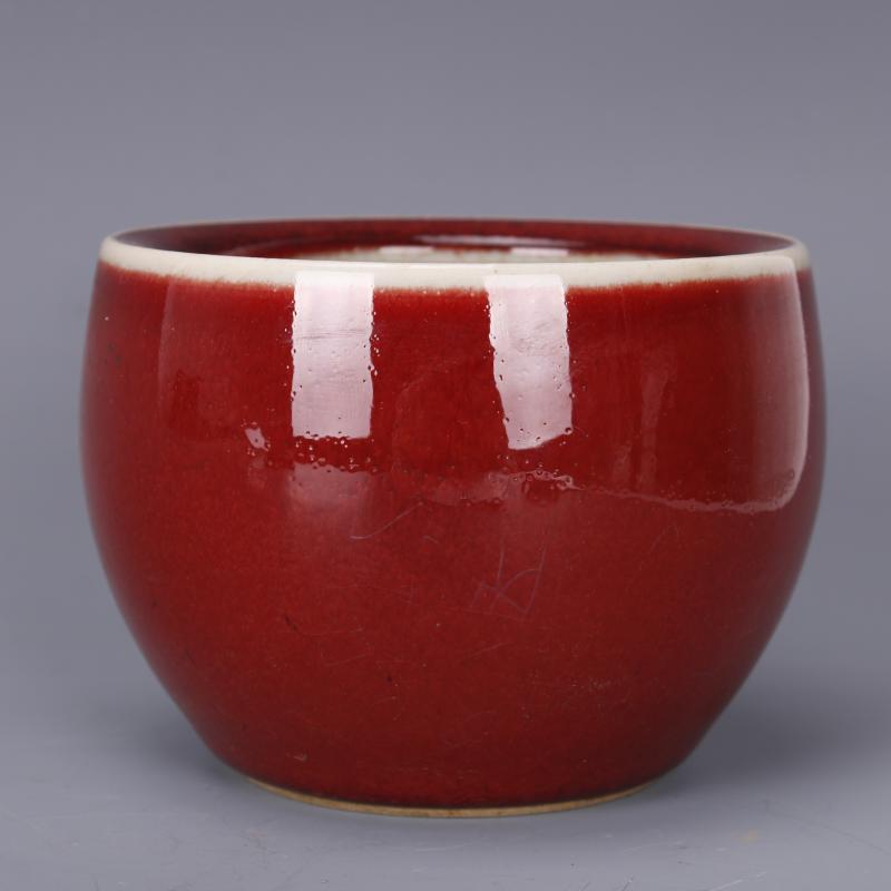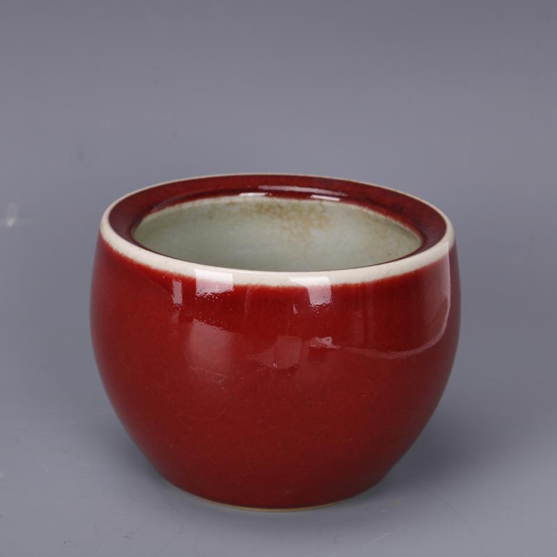 清乾隆郎紅釉小香爐缸手工仿古老貨瓷器家居中式擺件古董古玩收藏1入