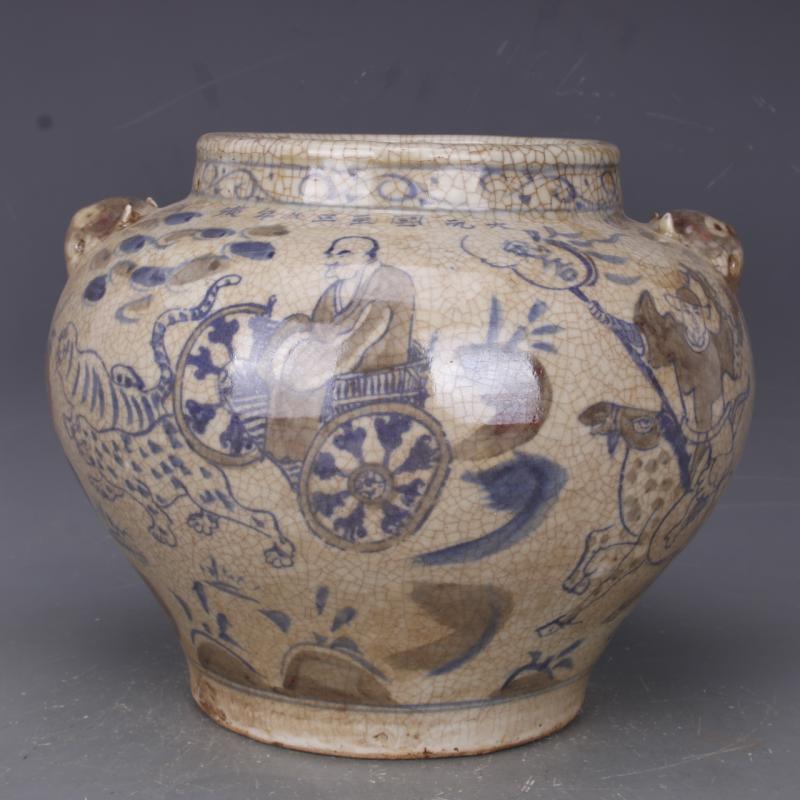 元青花釉里紅鬼谷子下山圖紋罐手繪仿古老貨瓷器家居中式古玩擺件1入