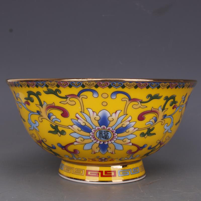 [5]清乾隆粉彩纏枝花紋面碗6寸仿古工藝瓷器家居餐具擺件古玩老收藏1入