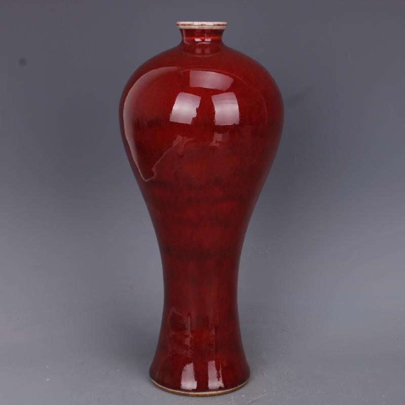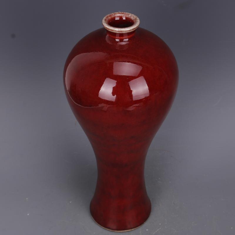 清雍正郎紅釉梅瓶手工仿古老貨瓷器家居酒店擺件古董古玩老貨收藏1入