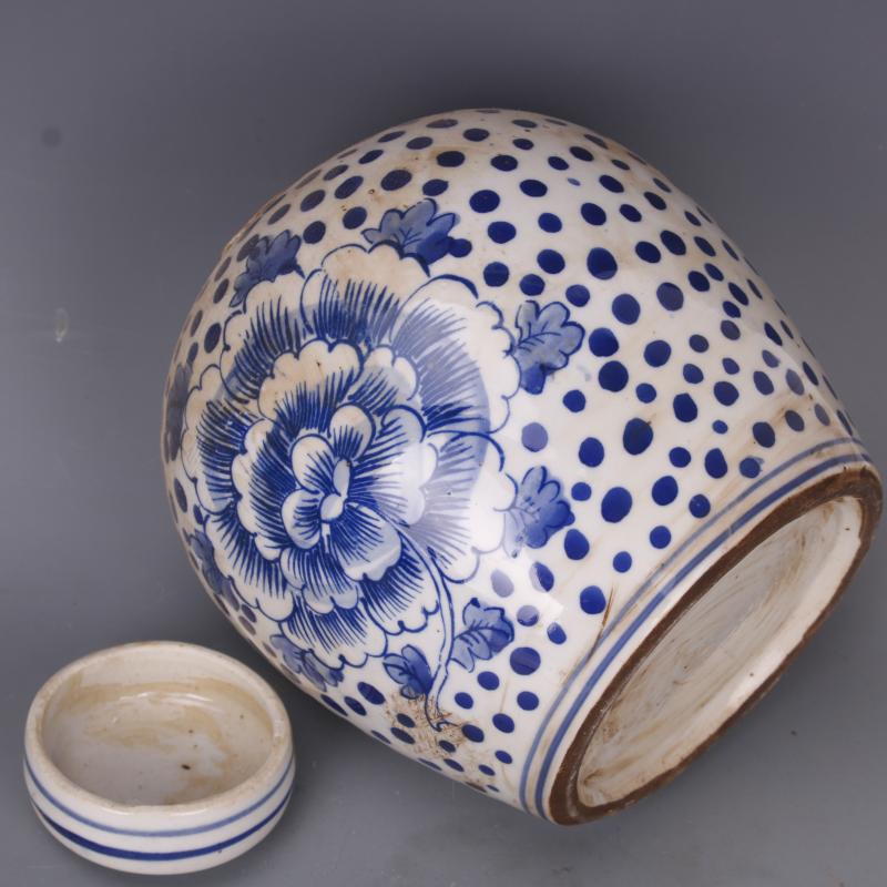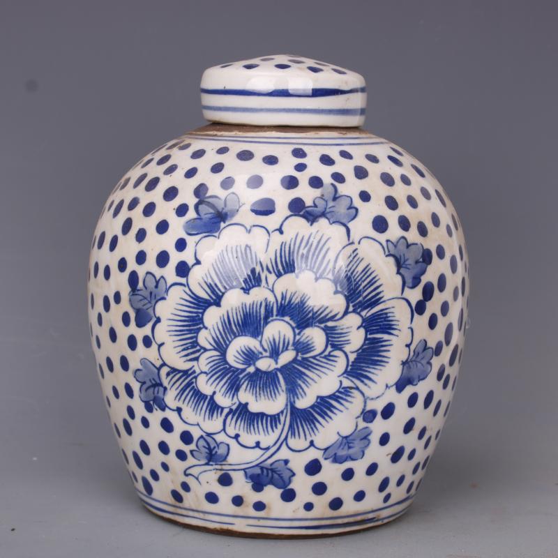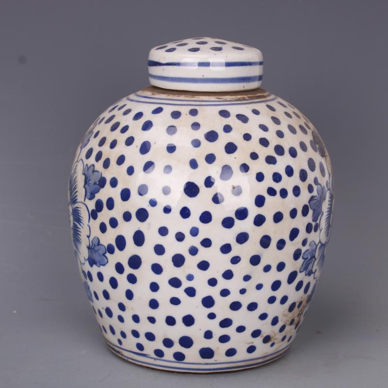 清光緒青花花紋茶葉罐仿古老貨瓷器家居中式擺件古董古玩博古收藏1入
