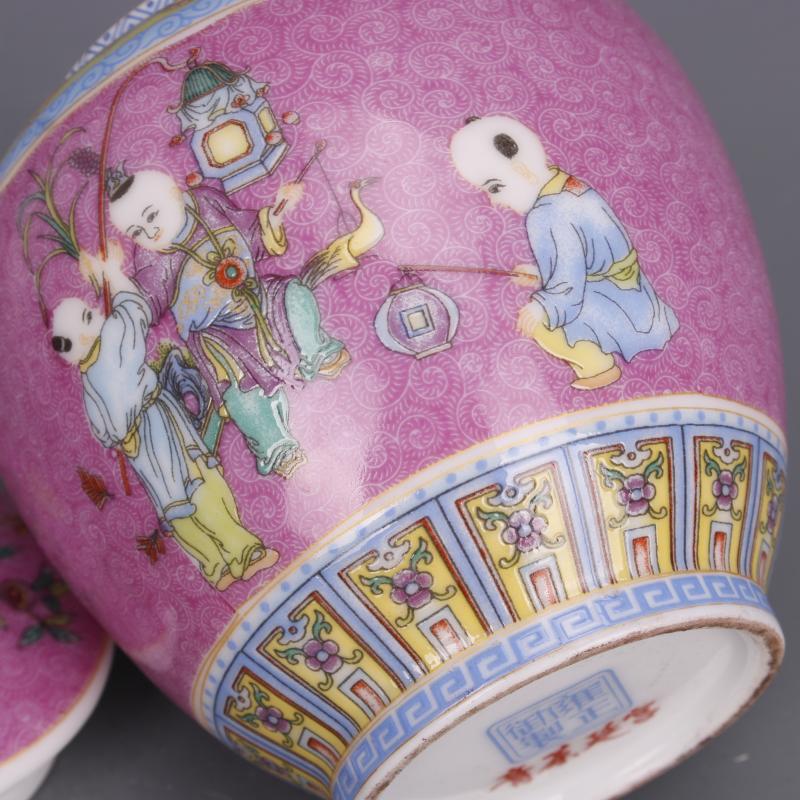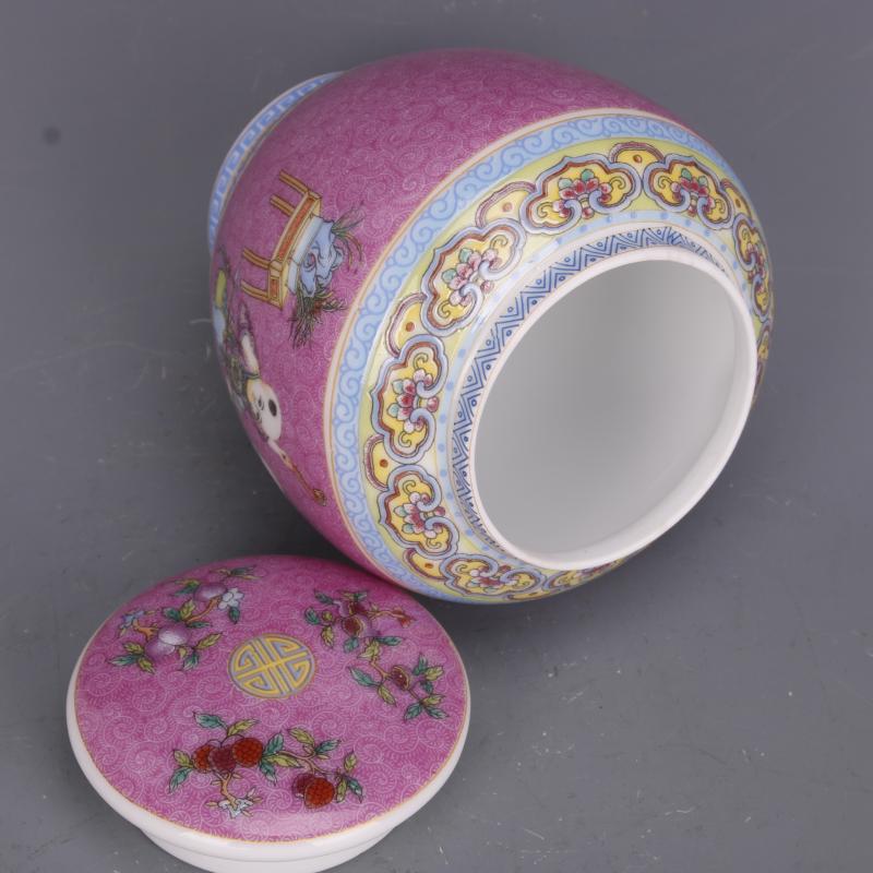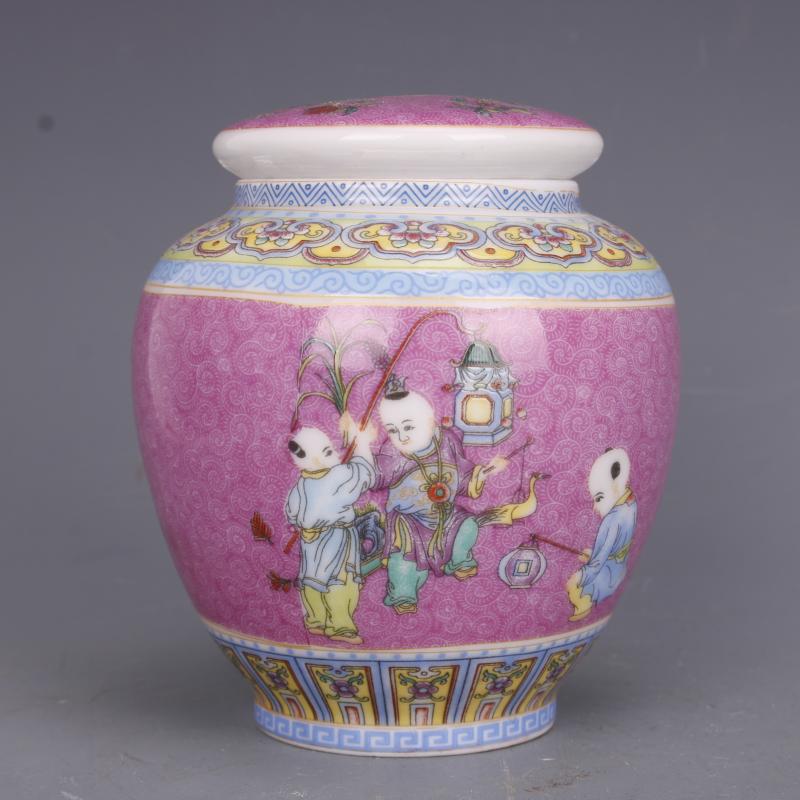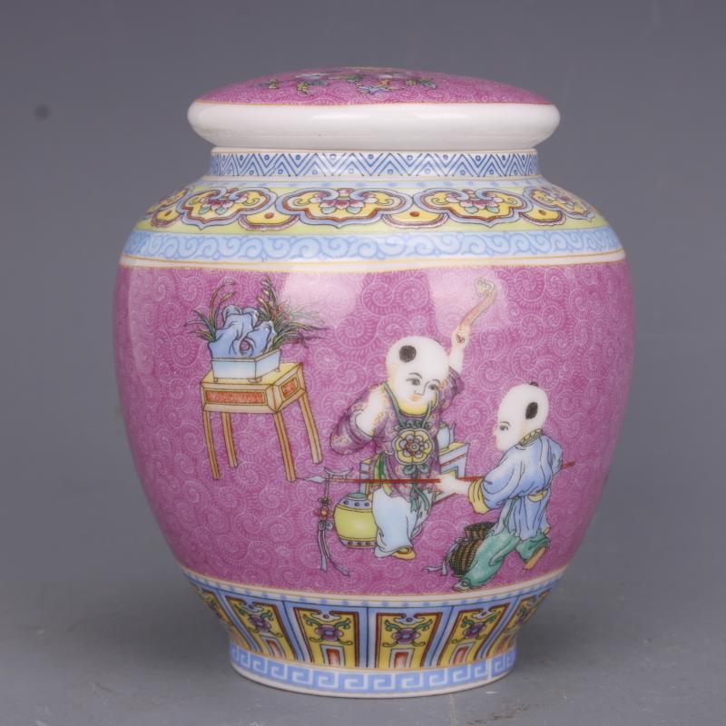 清乾隆琺瑯彩影戲紋茶葉罐仿古中式瓷器家居博古擺件古董古玩收藏1入