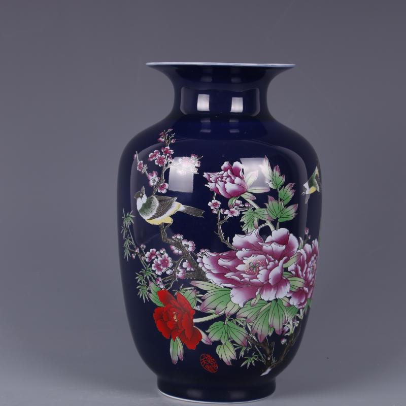 清乾隆藍地粉彩玉堂富貴冬瓜瓶仿古中式家居餐廳瓷器擺件古董古玩1入