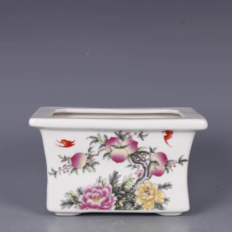 民國粉彩福壽花紋四方花盆民間收藏家居裝飾花卉擺件仿古瓷器古玩1入