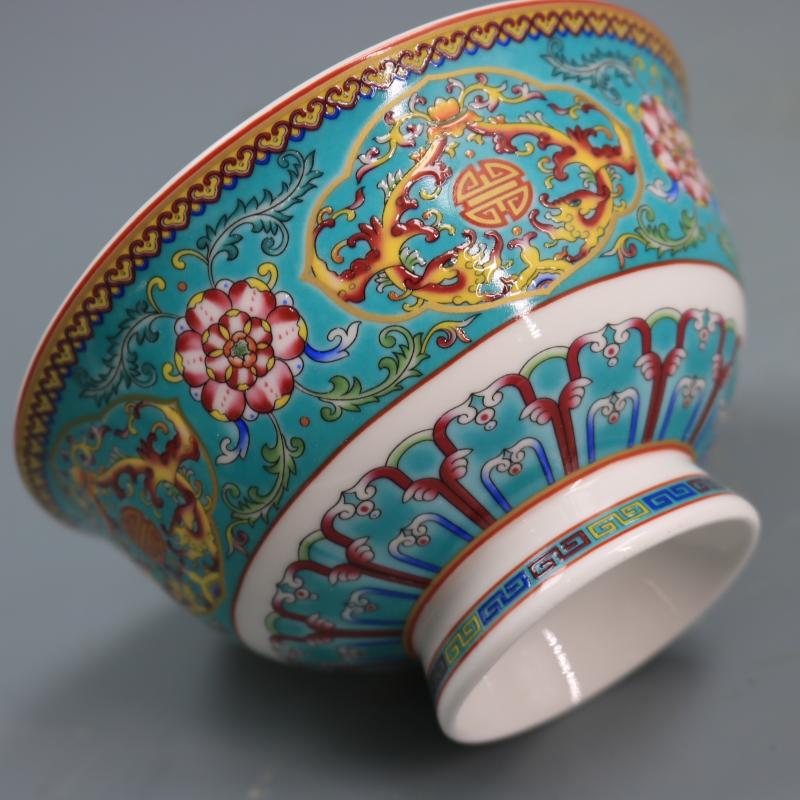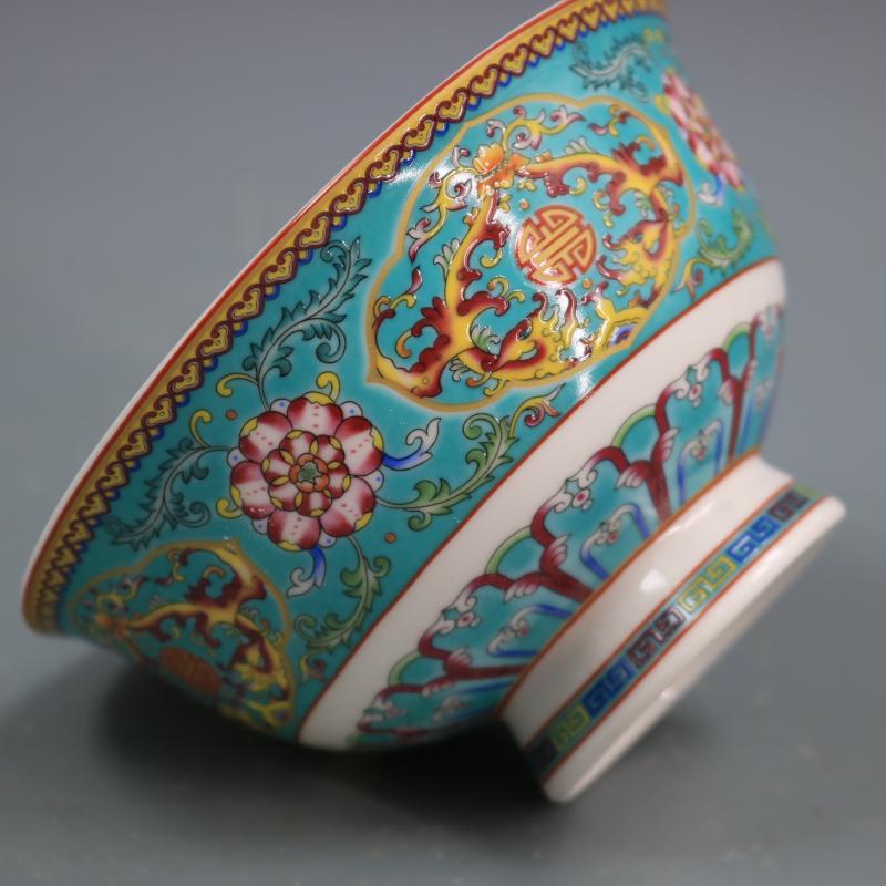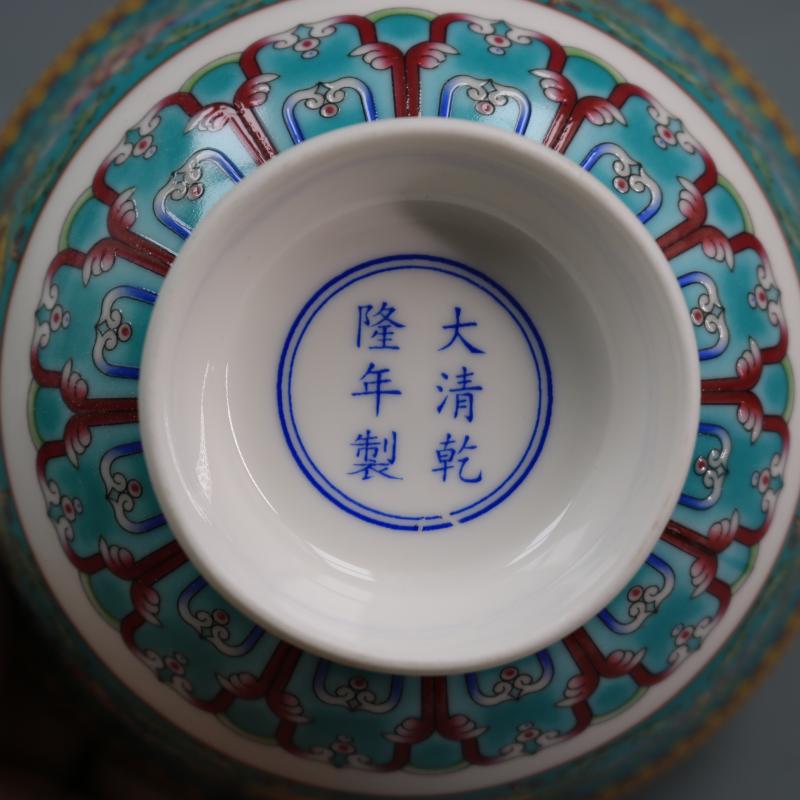 清乾隆綠地粉彩草花龍紋碗仿古花紋瓷器家居裝飾擺件古董古玩收藏1入