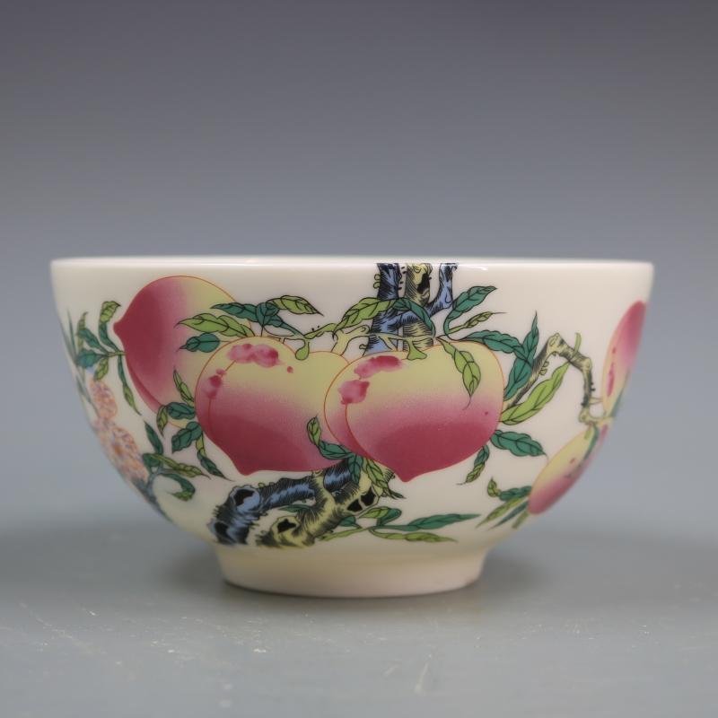 清乾隆粉彩九桃紋碗仿古款貼花瓷器家居擺件古董古玩酒店裝飾瓷器1入