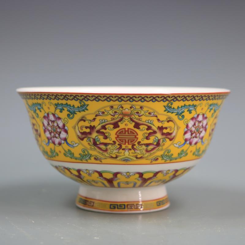 清乾隆黃地粉彩草花龍紋碗仿古花紋瓷器家居裝飾擺件古董古玩收藏1入