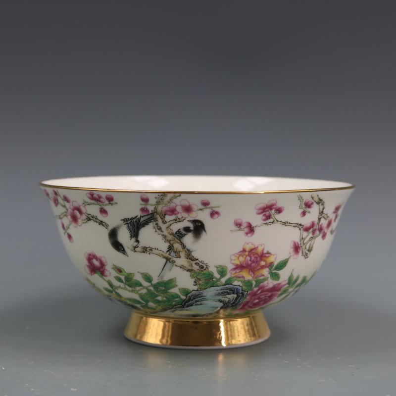 清乾隆粉彩喜上眉梢花鳥碗仿古花紋瓷器家居裝飾擺件古董古玩收藏1入