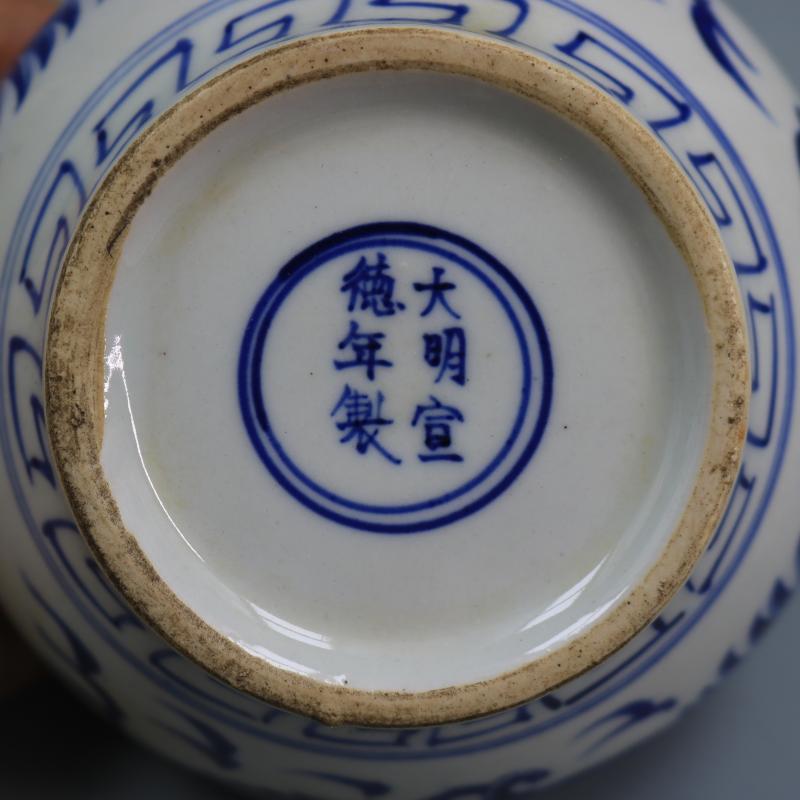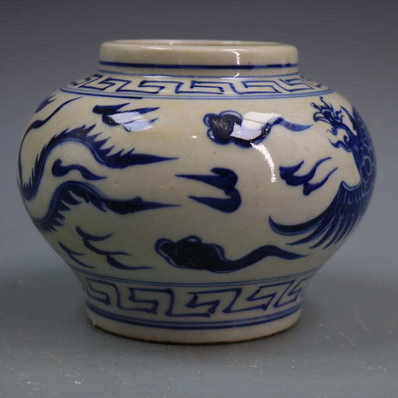 元青花鳳紋小罐手繪仿古工藝品瓷器家居裝飾擺件古董古玩老貨收藏1入