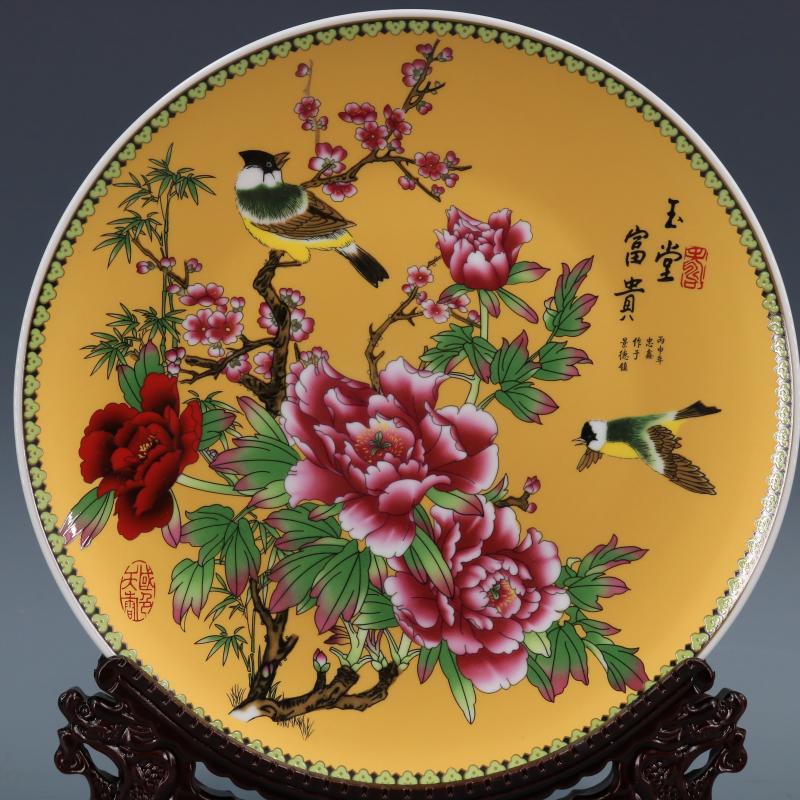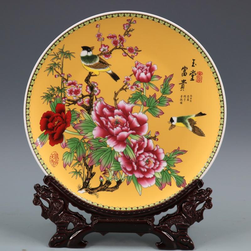 清乾隆款粉彩富貴玉堂紋平盤仿古工藝品瓷器家居擺件古董古玩收藏1入
