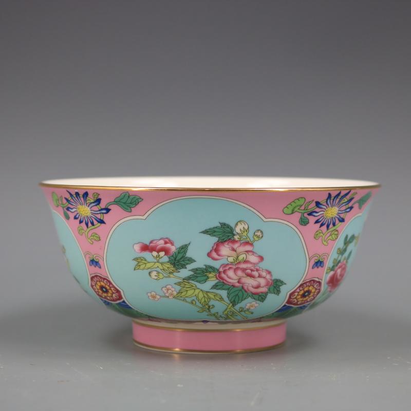 清乾隆開光描金粉彩花紋碗仿古工藝瓷器家居博古擺件古董古玩收藏1入