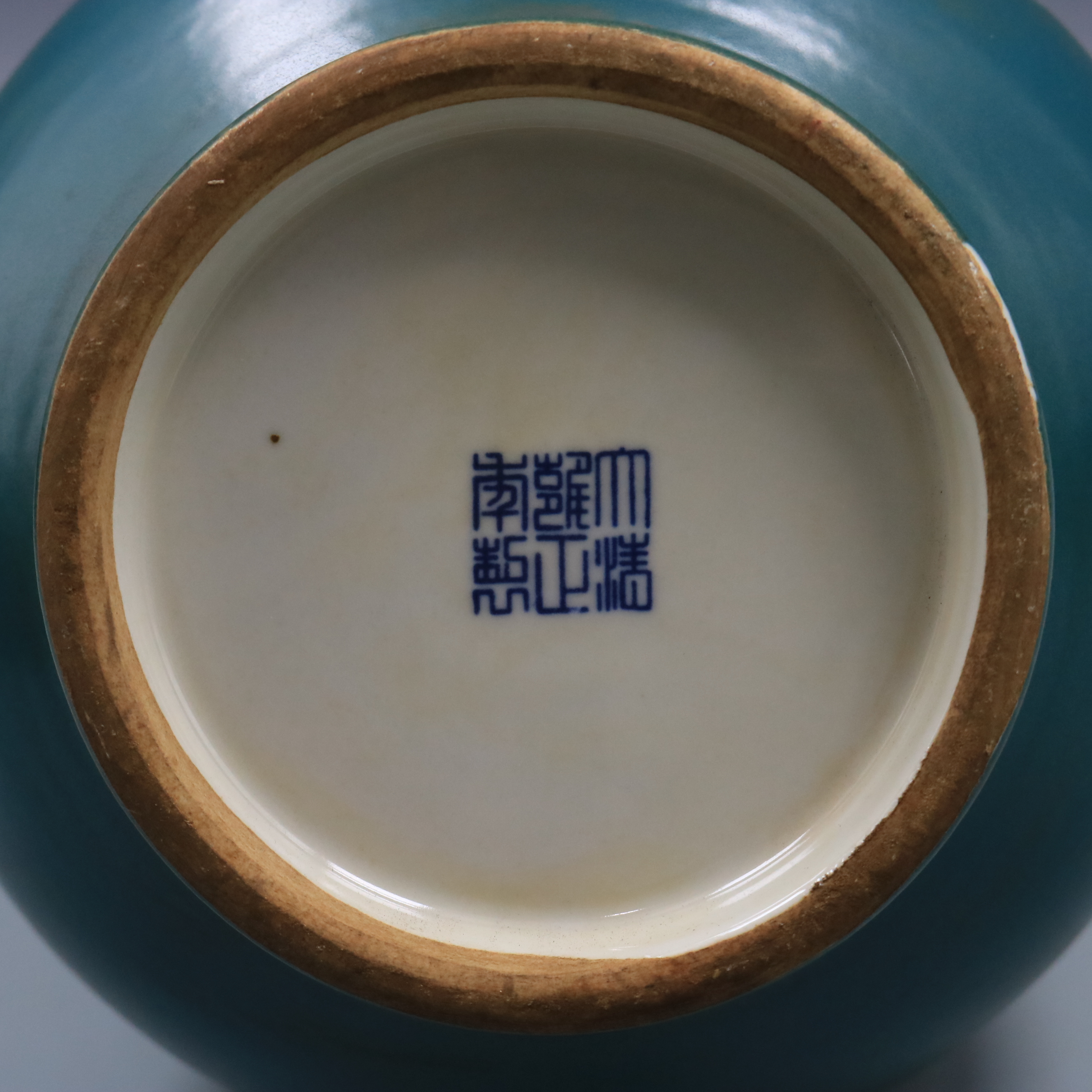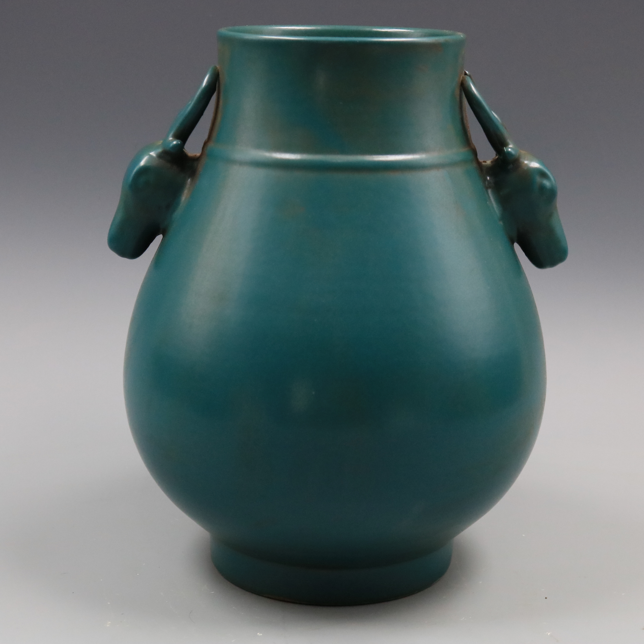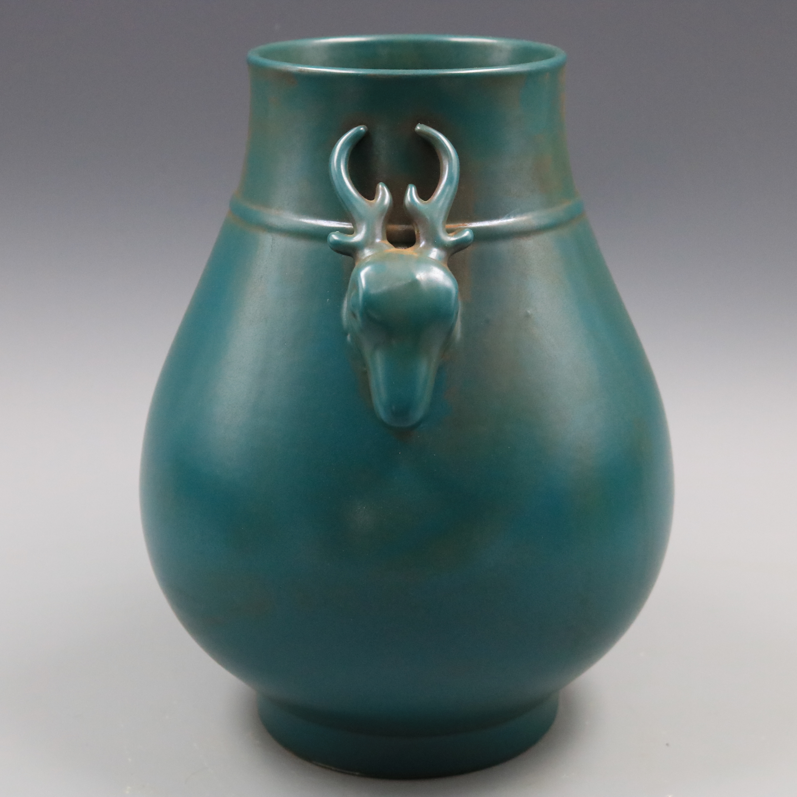 清雍正孔雀綠釉鹿頭尊福筒仿古老貨瓷器家居博古裝飾擺件古董古玩1入