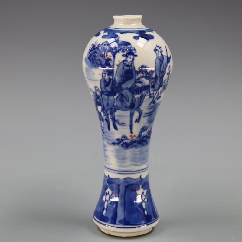 清乾隆青花人物故事梅瓶家居仿古裝飾瓷器小擺件手工古董古玩收藏1入