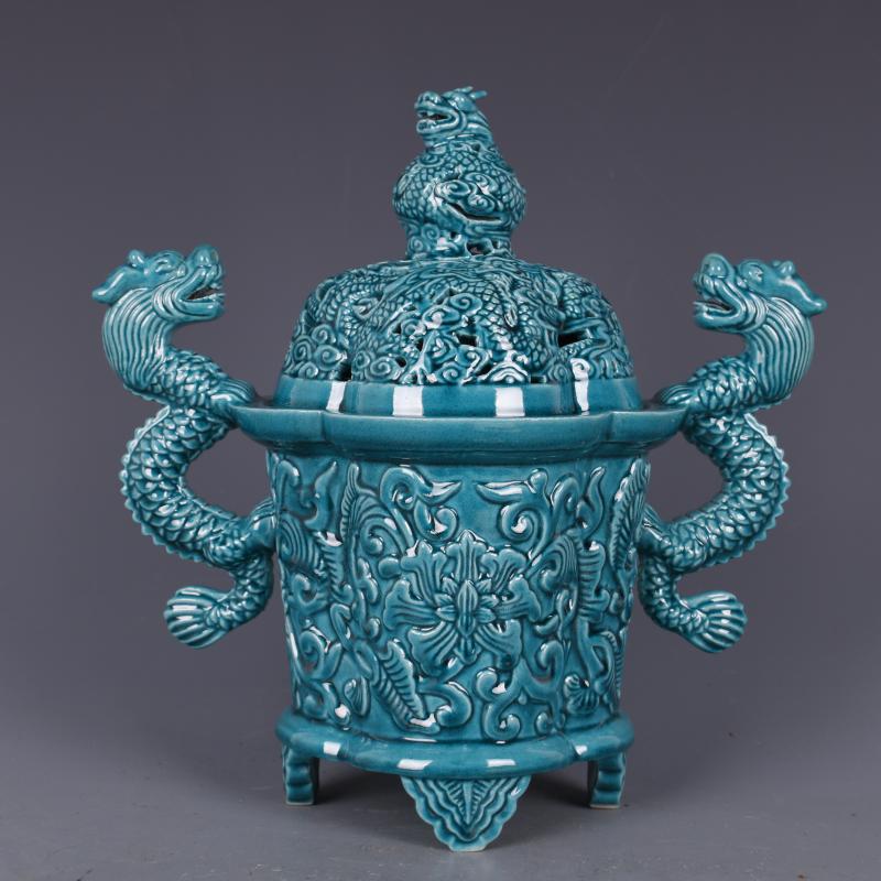 清乾隆鏤空刻花紋雙龍香薰爐手工仿古老貨瓷器家居擺件古董古玩1入