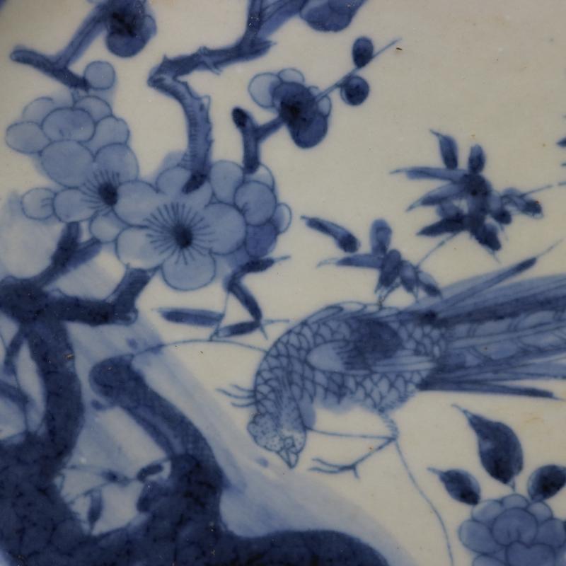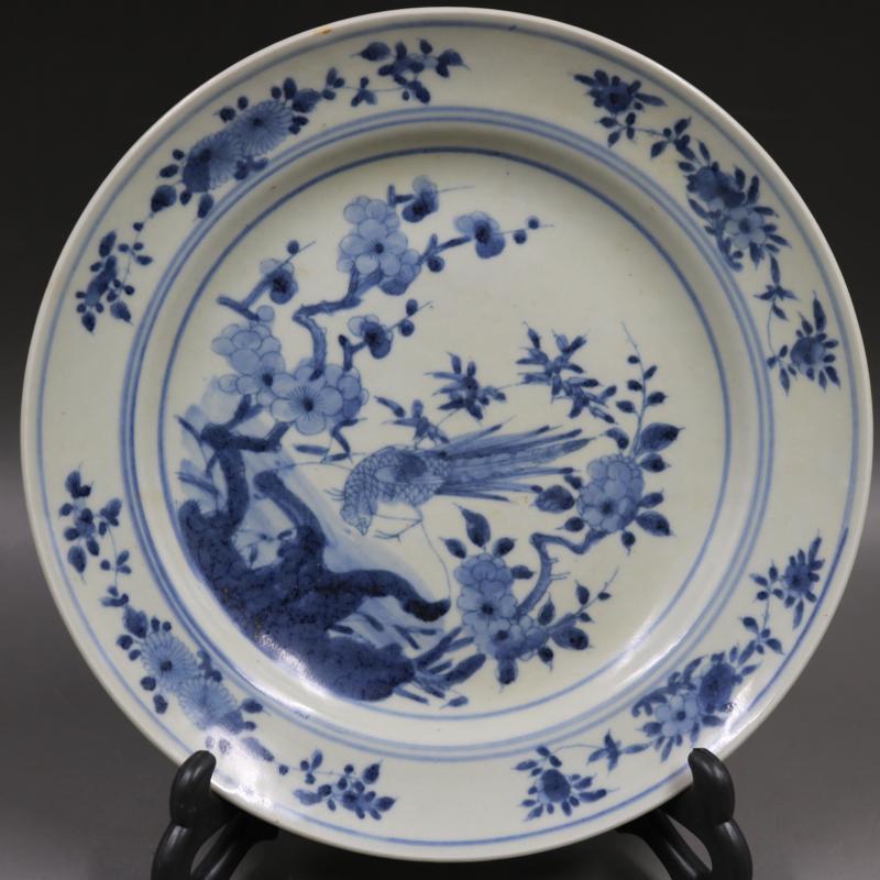 清康熙青花梅花花鳥平盤仿古老貨瓷器家居博古架擺件古董古玩收藏1入