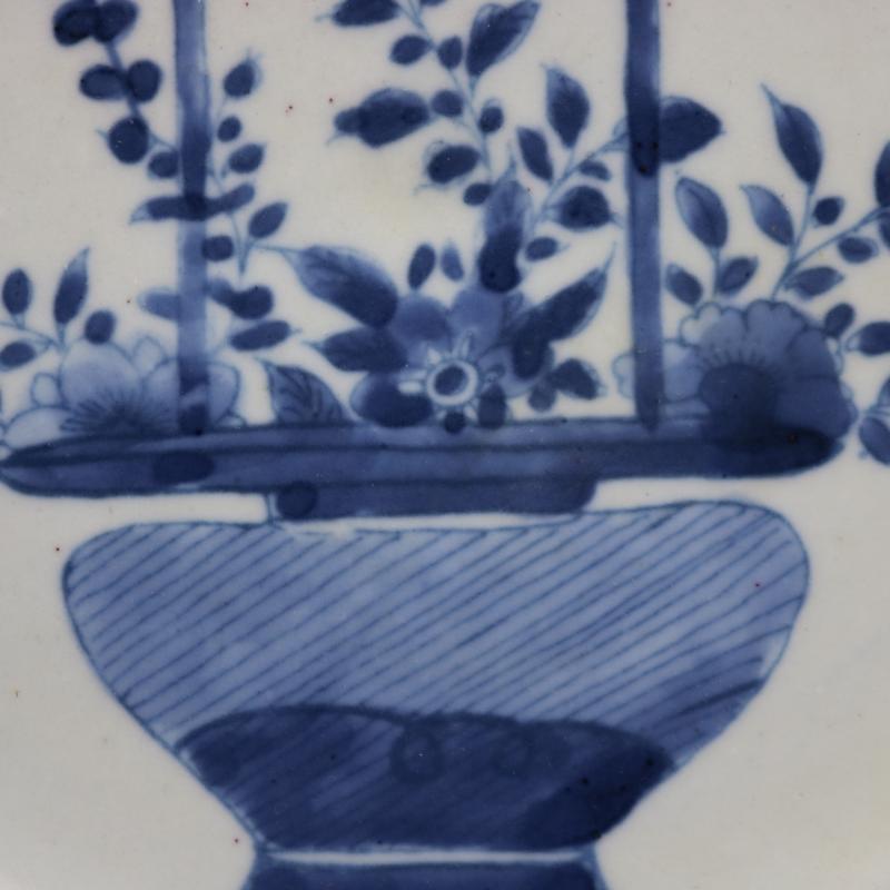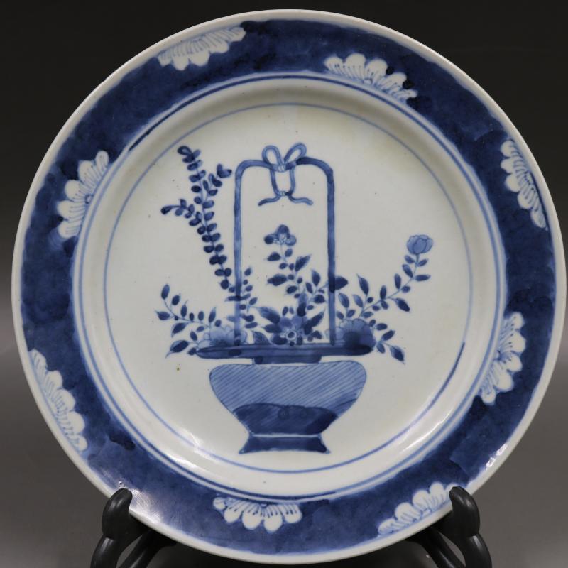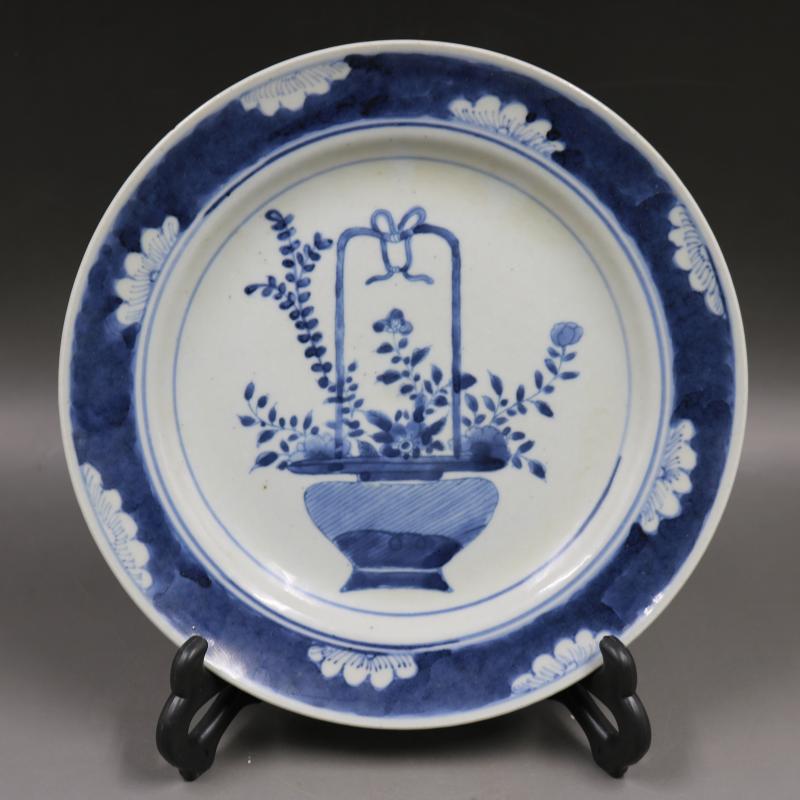 清康熙青花花籃花紋平盤仿古老貨瓷器家居博古架擺件古董古玩收藏1入