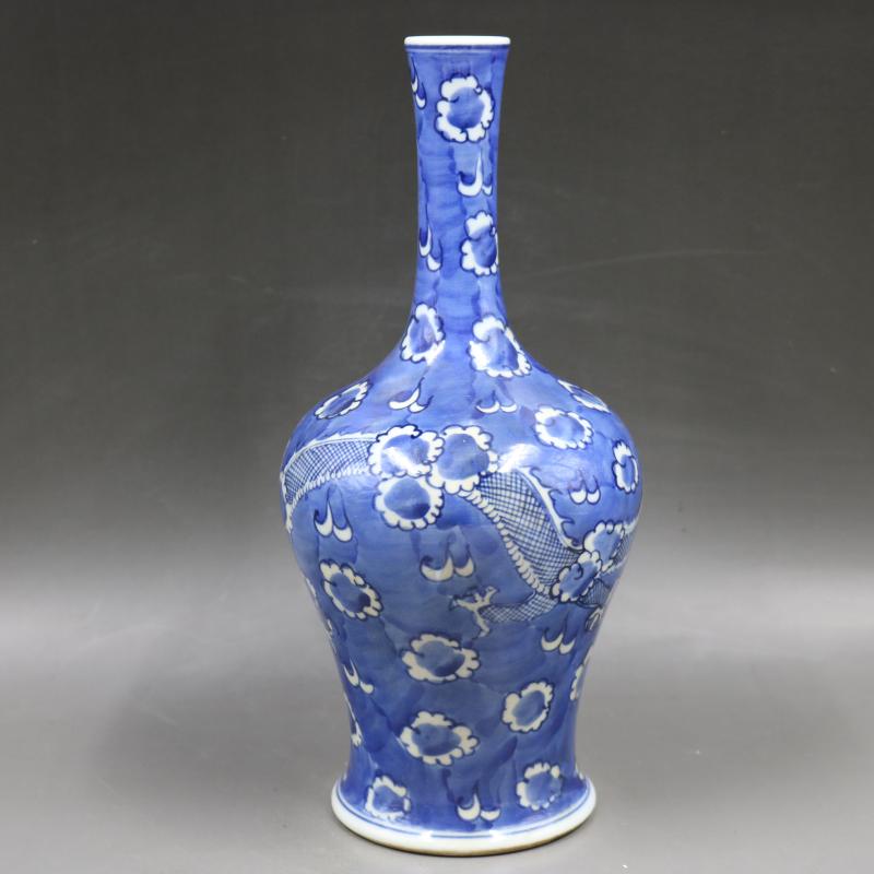 清康熙青花穿花龍紋搖鈴尊瓶手繪仿古老貨瓷器家居擺件古董古玩1入