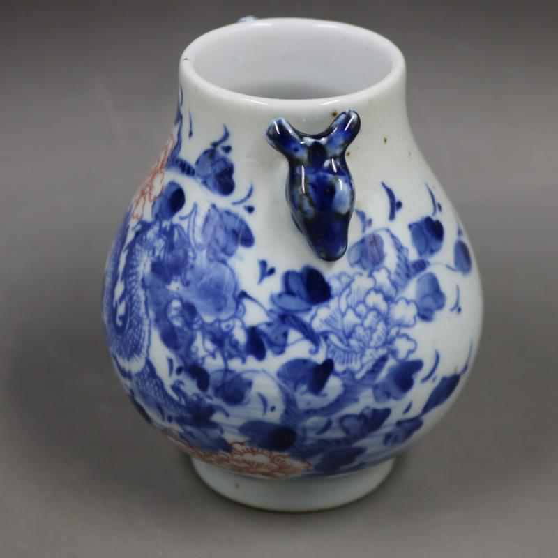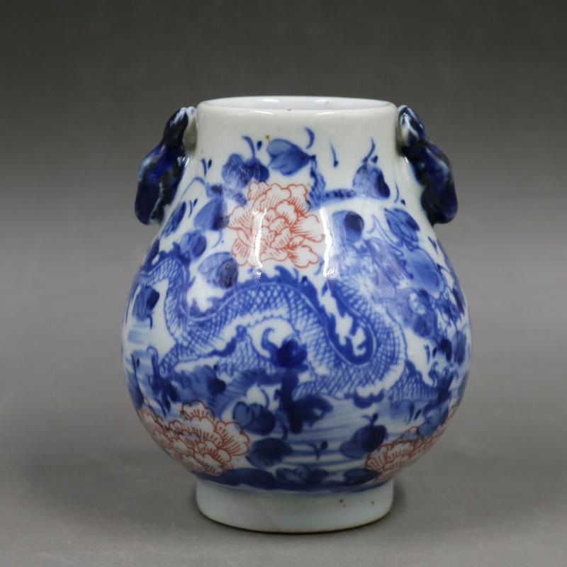 清乾隆青花釉里紅穿花龍紋鹿頭尊仿古出土瓷器古董古玩家居擺件1入