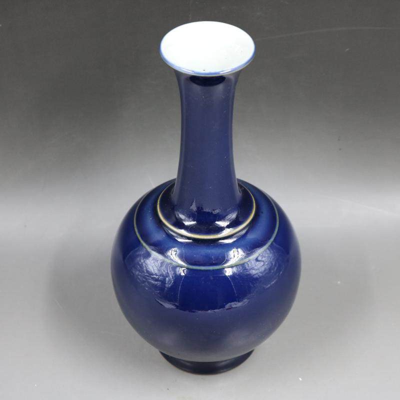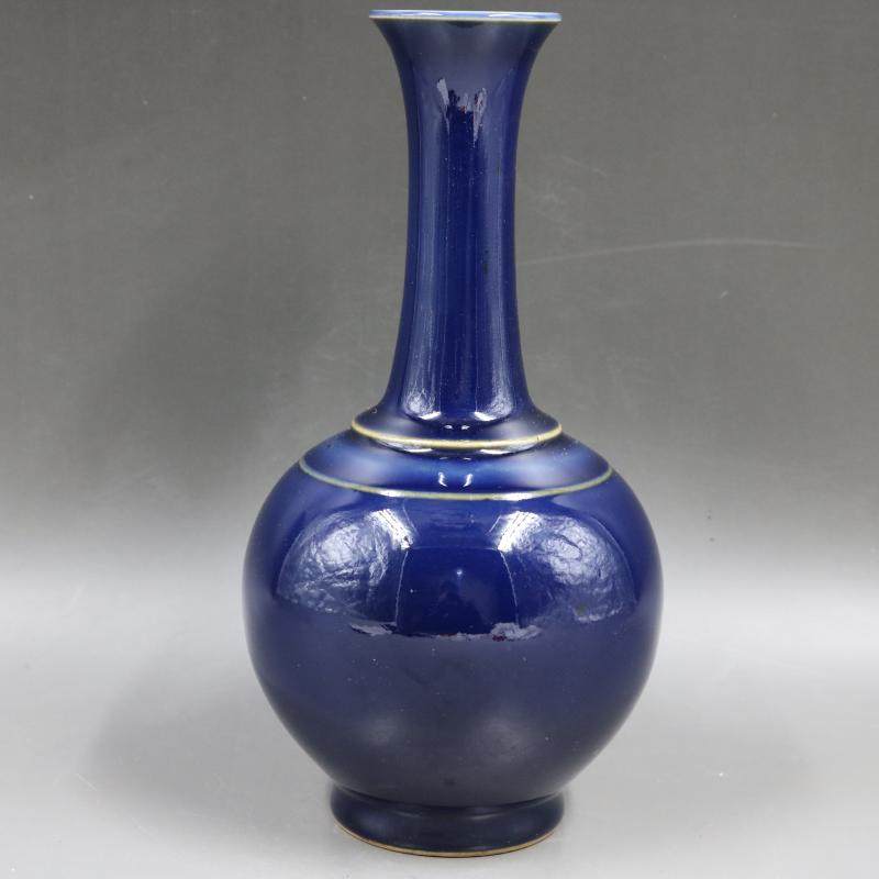 清康熙祭藍釉賞瓶手工仿古家居復古裝飾瓷器擺件古董古玩老貨收藏1入
