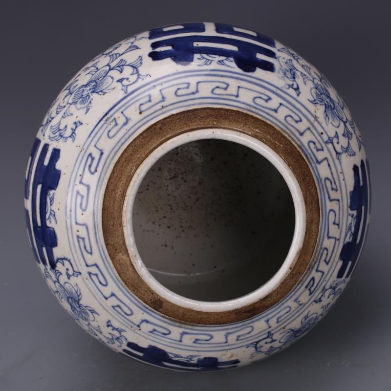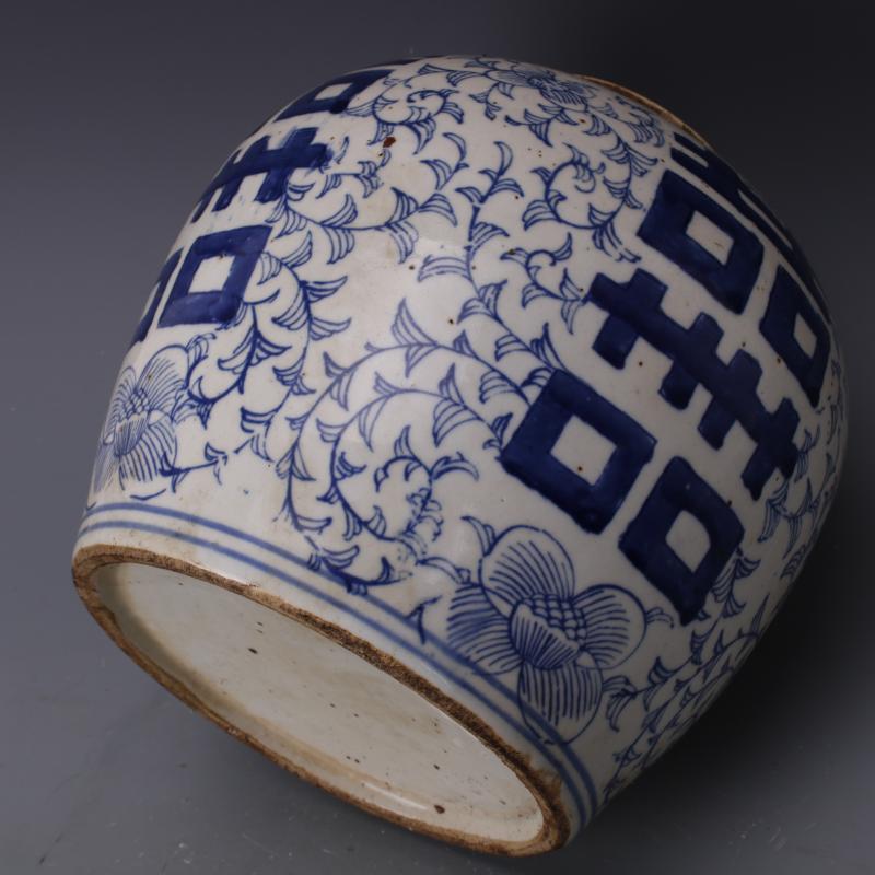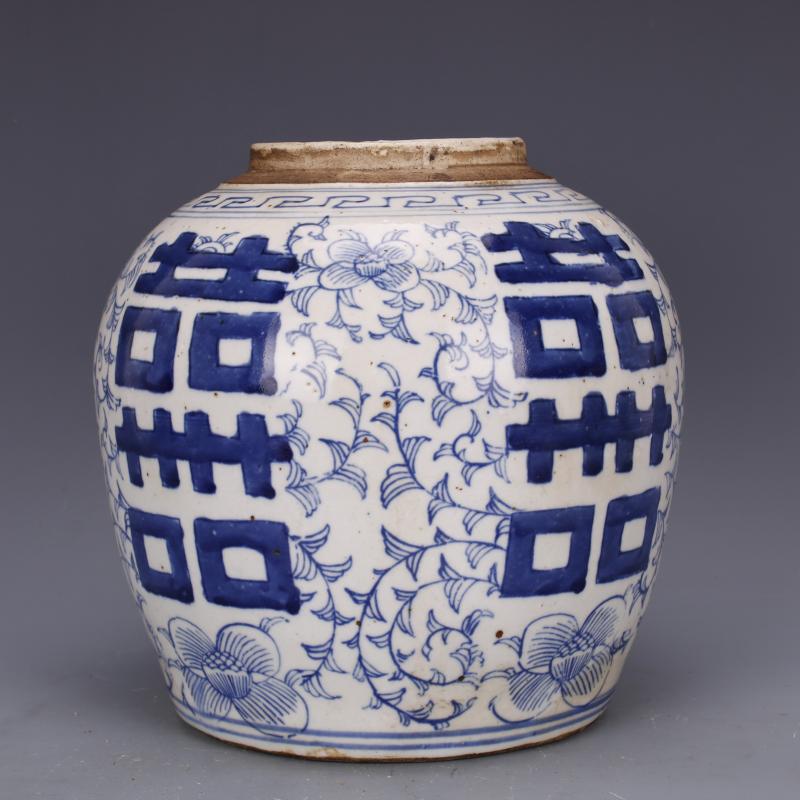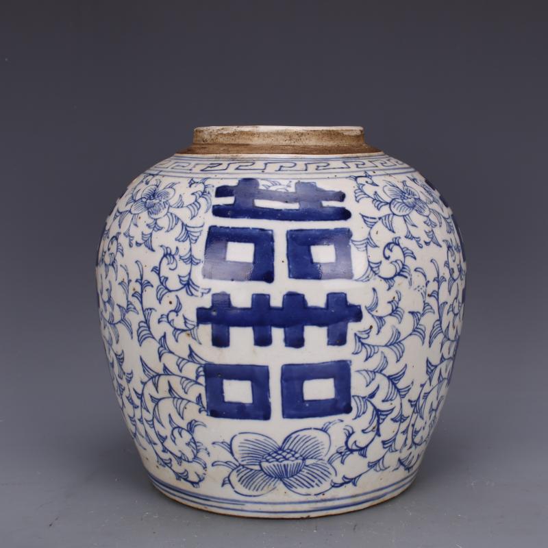 清康熙青花喜字紋罐民間老貨包老收藏品家居復古工藝擺件古董古玩1入