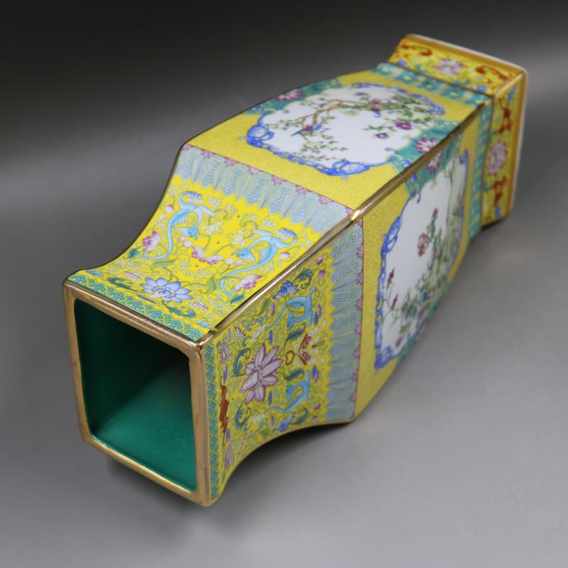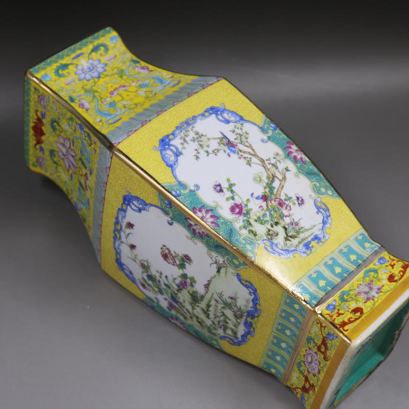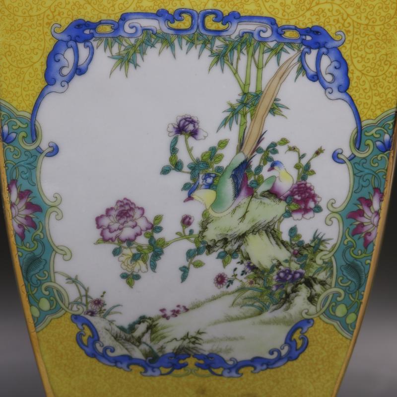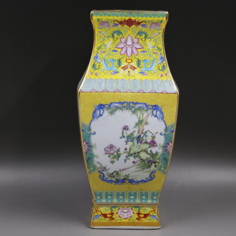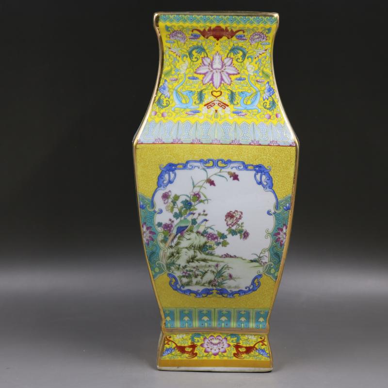 大清乾隆琺瑯彩花鳥四方鑲器瓶家居瓷器擺件仿古瓷器收藏古董古玩1入