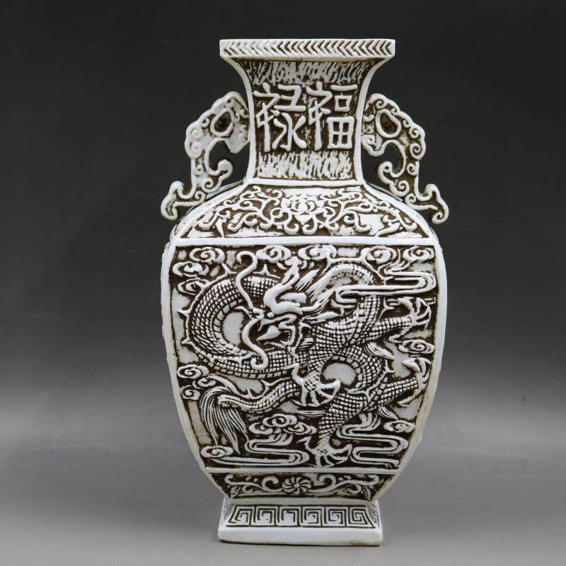 民國白瓷浮雕龍紋四方瓶家居復古家居博古架古玩擺件老貨古董收藏1入