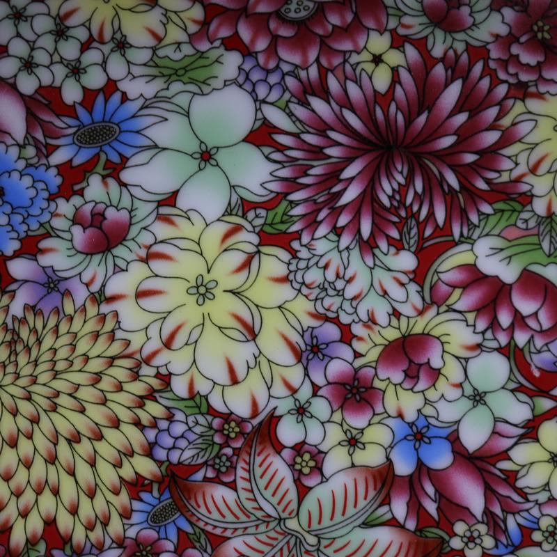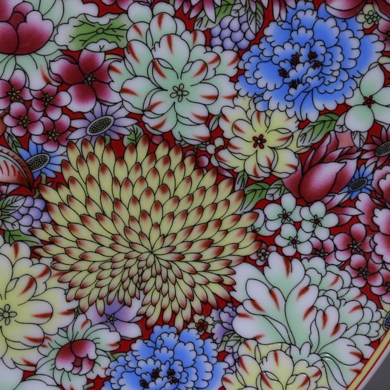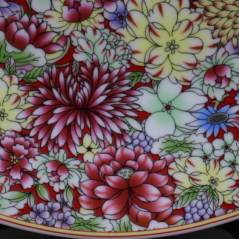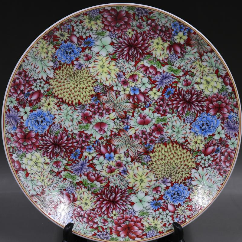 清乾隆粉彩萬花紋盤仿古家居裝飾復古瓷器擺件古玩觀賞瓷器擺件1入