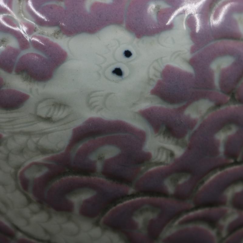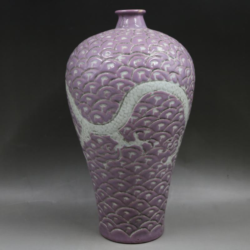 元粉紅釉浮雕海水龍紋梅瓶手工仿古家居裝飾瓷器擺件古董古玩收藏1入
