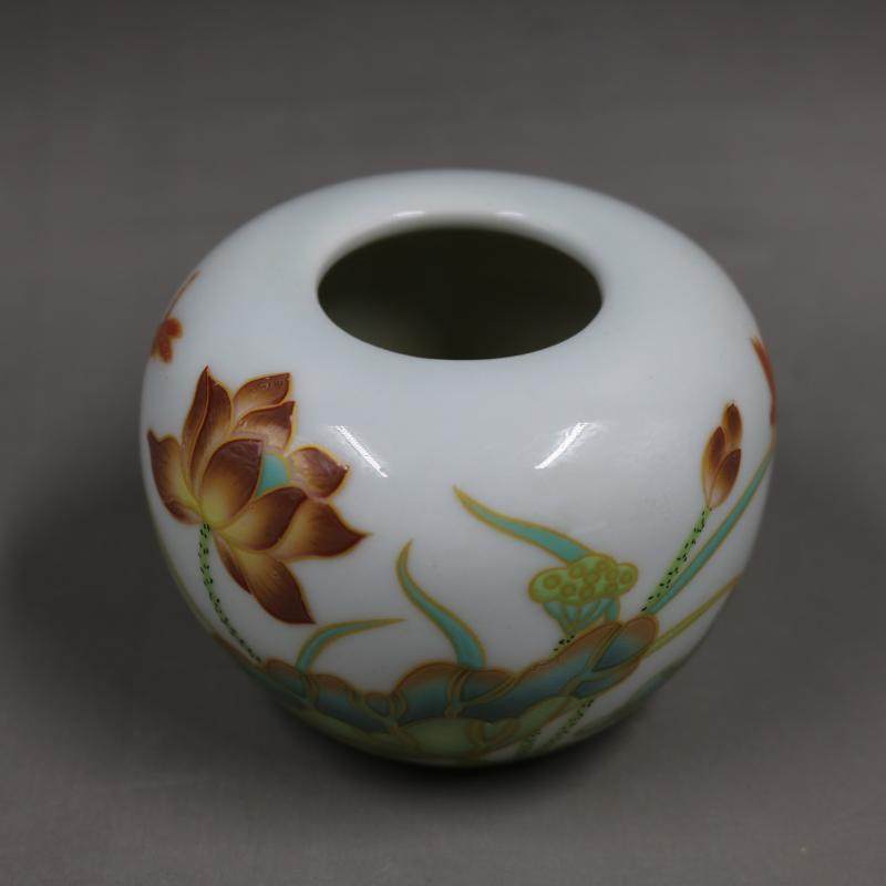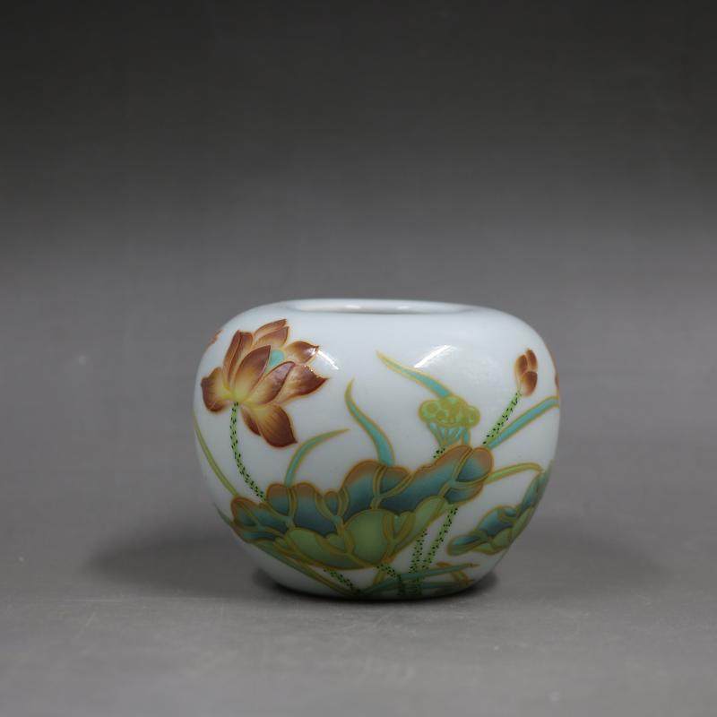 民國粉彩荷花荷葉清風水洗仿古瓷器家居文房擺件古董古玩老貨收藏1入