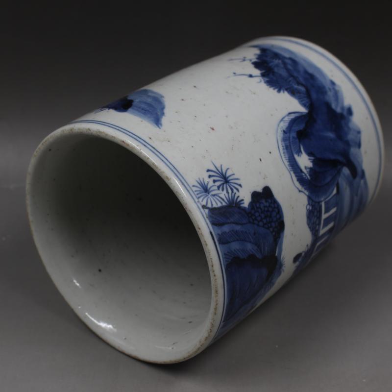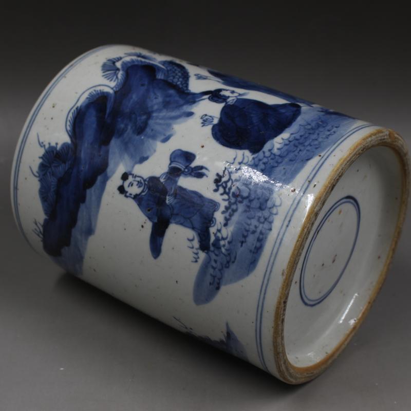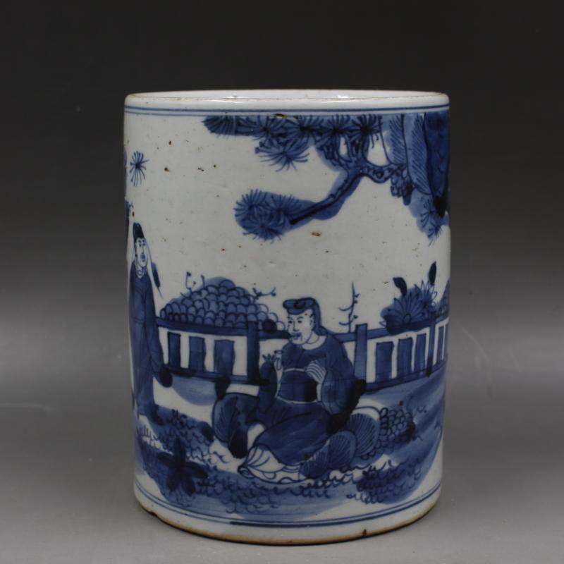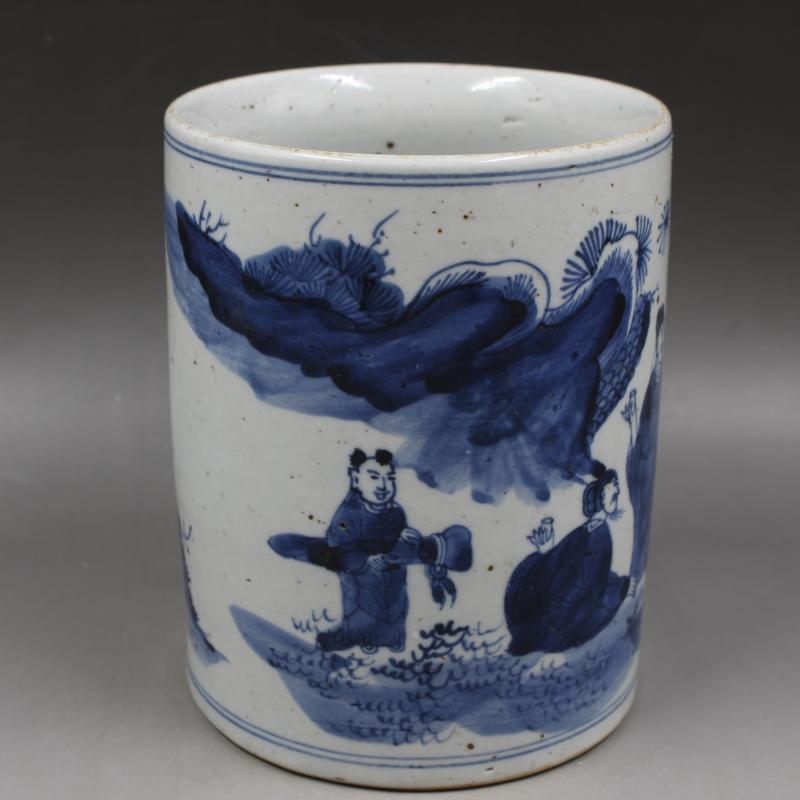大清康熙年制青花人物筆筒手工仿古老貨瓷器家居文房擺件古董古玩1入