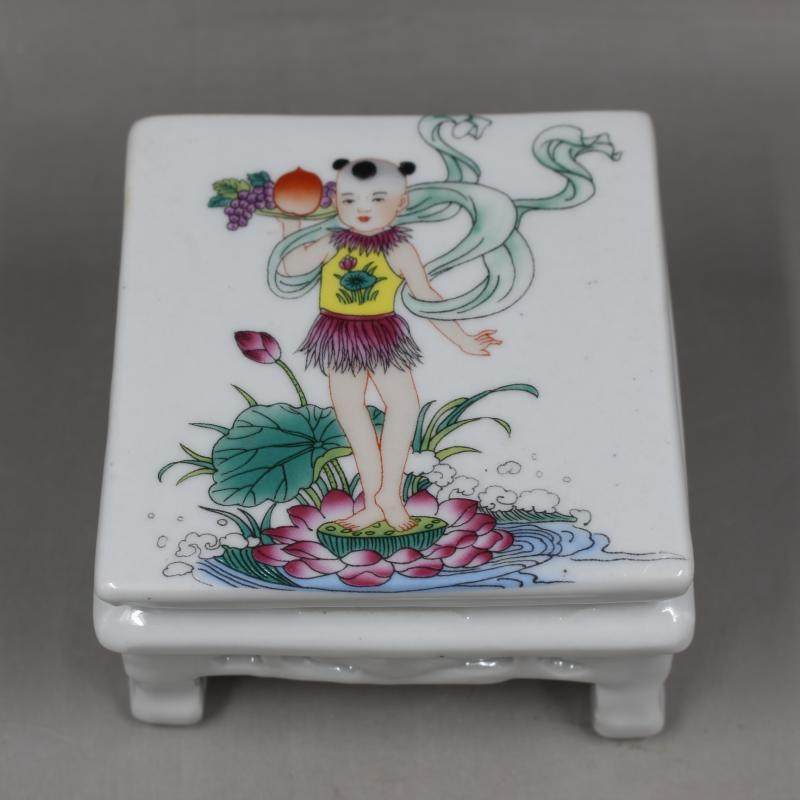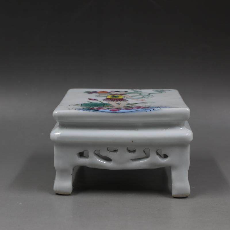 民國粉彩人物鏤空花盆托小八仙桌仿古瓷器古董古玩老貨收藏擺件1入