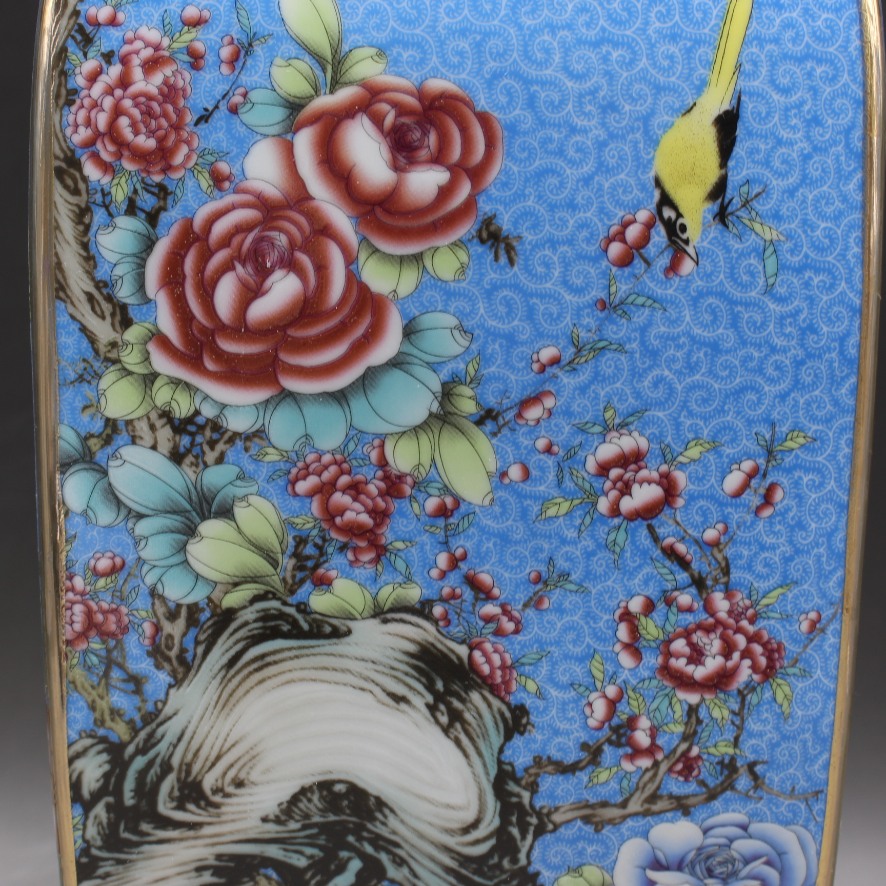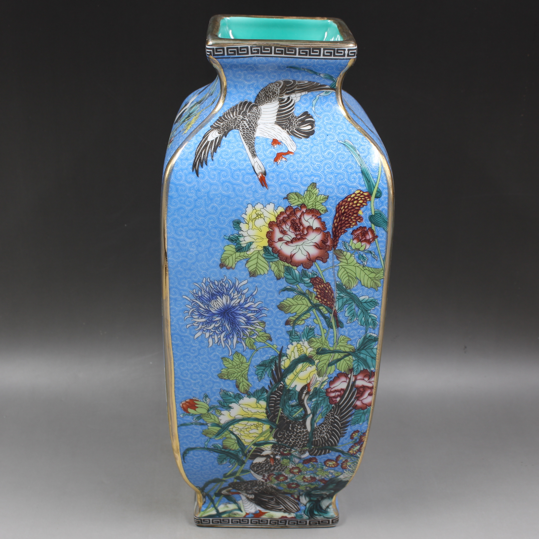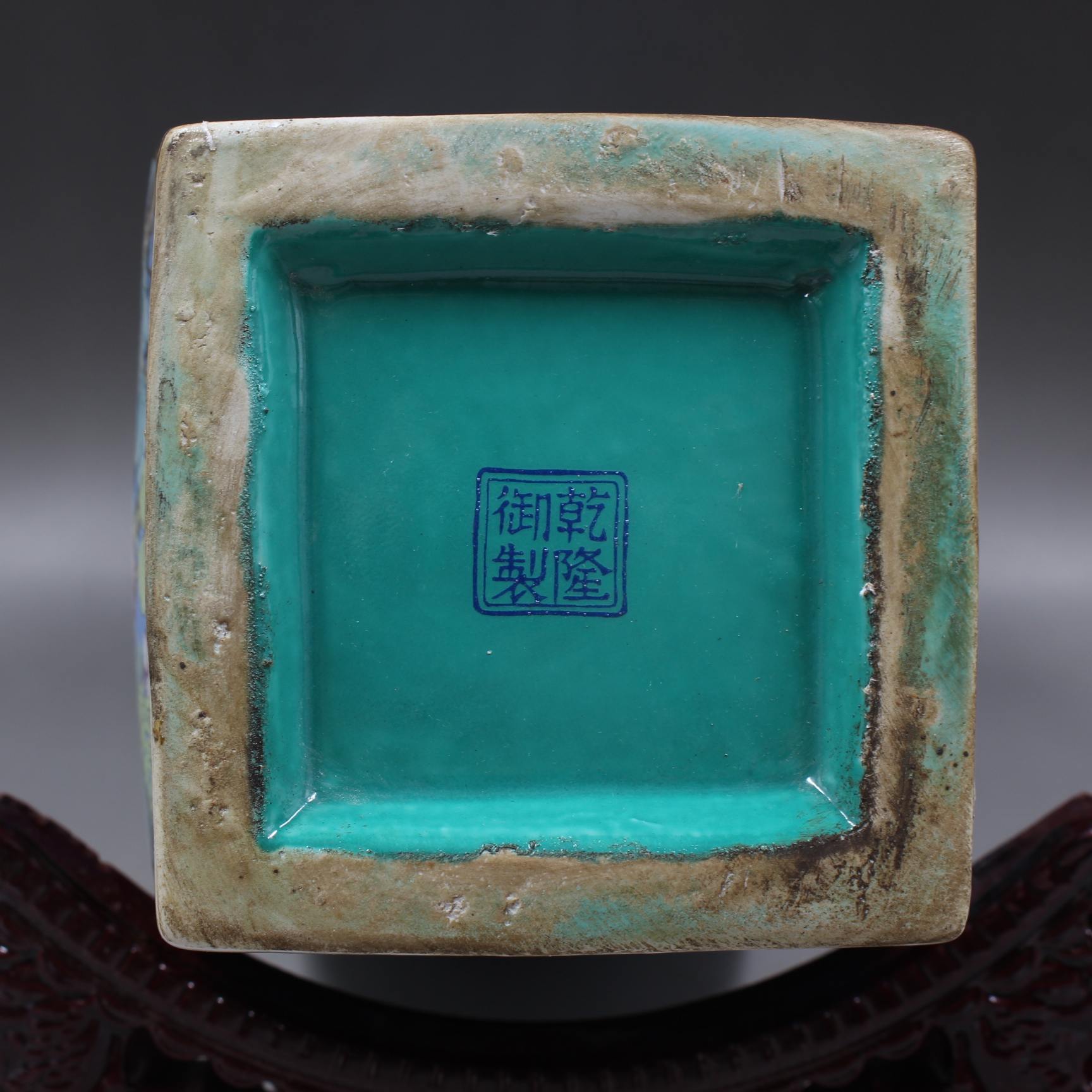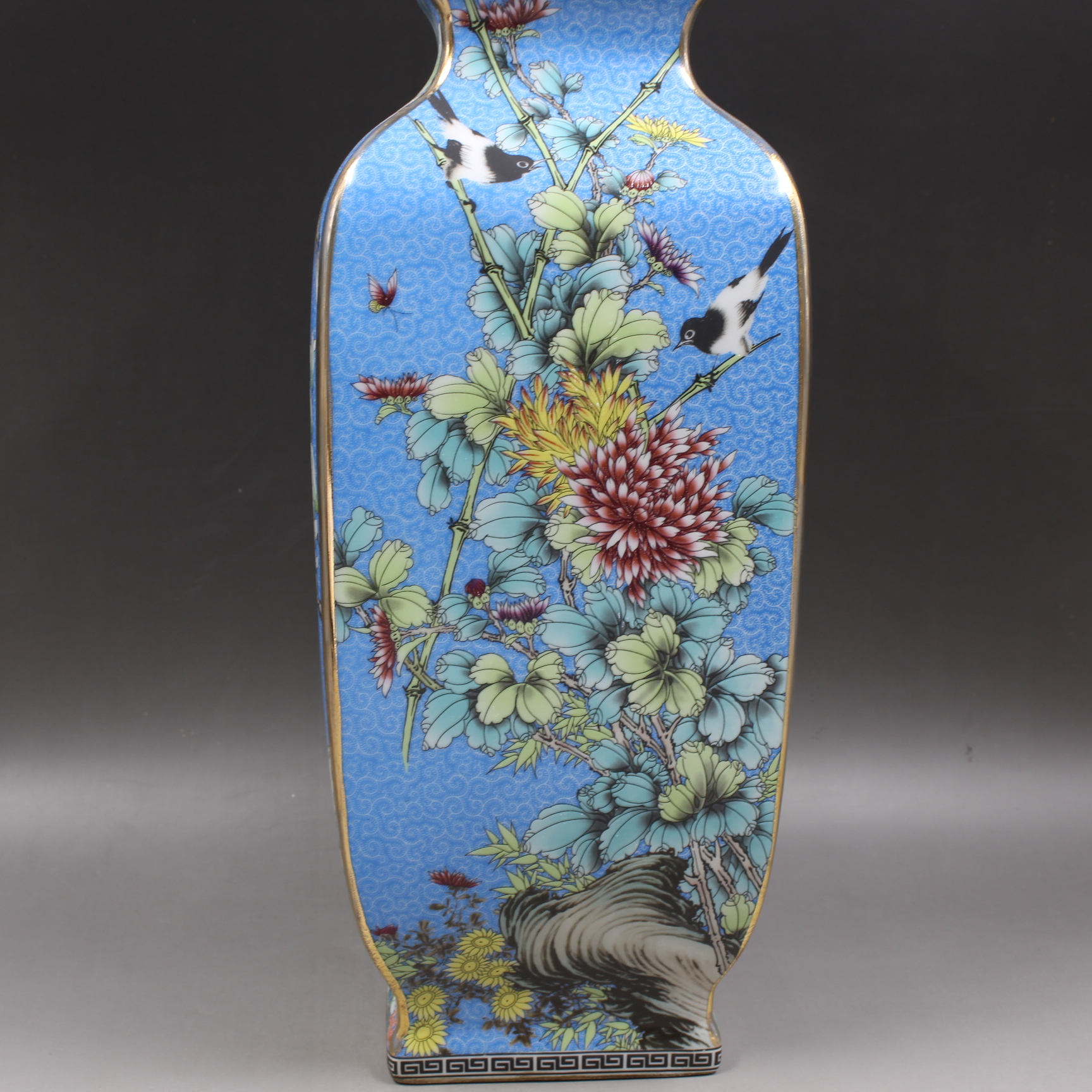 大清乾隆描金琺瑯彩花鳥四方瓶仿古老貨瓷器家居擺件古董古玩收藏1入
