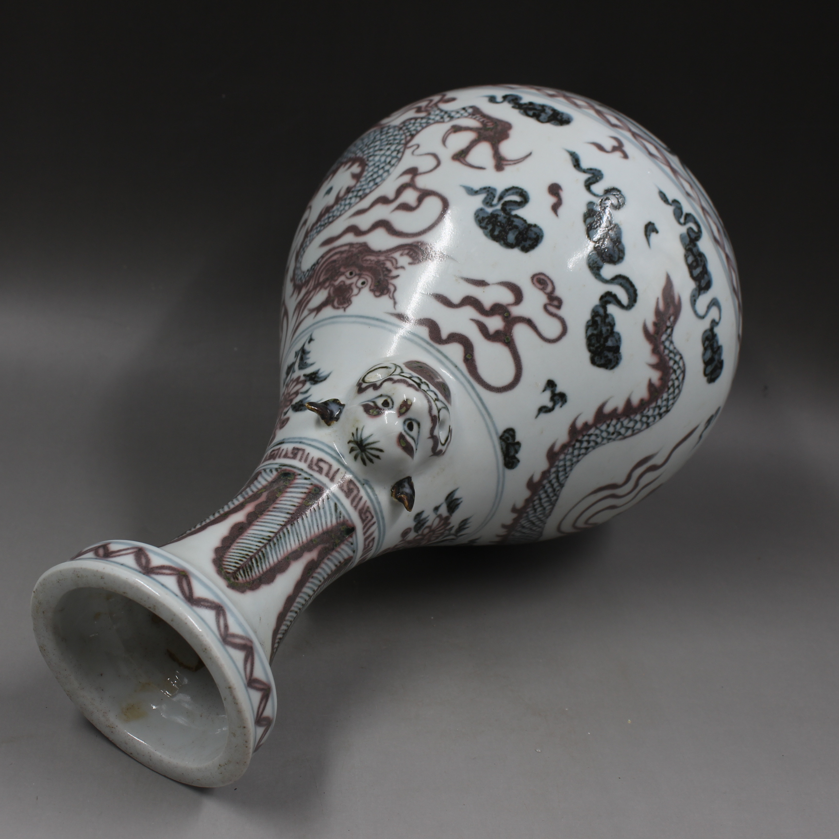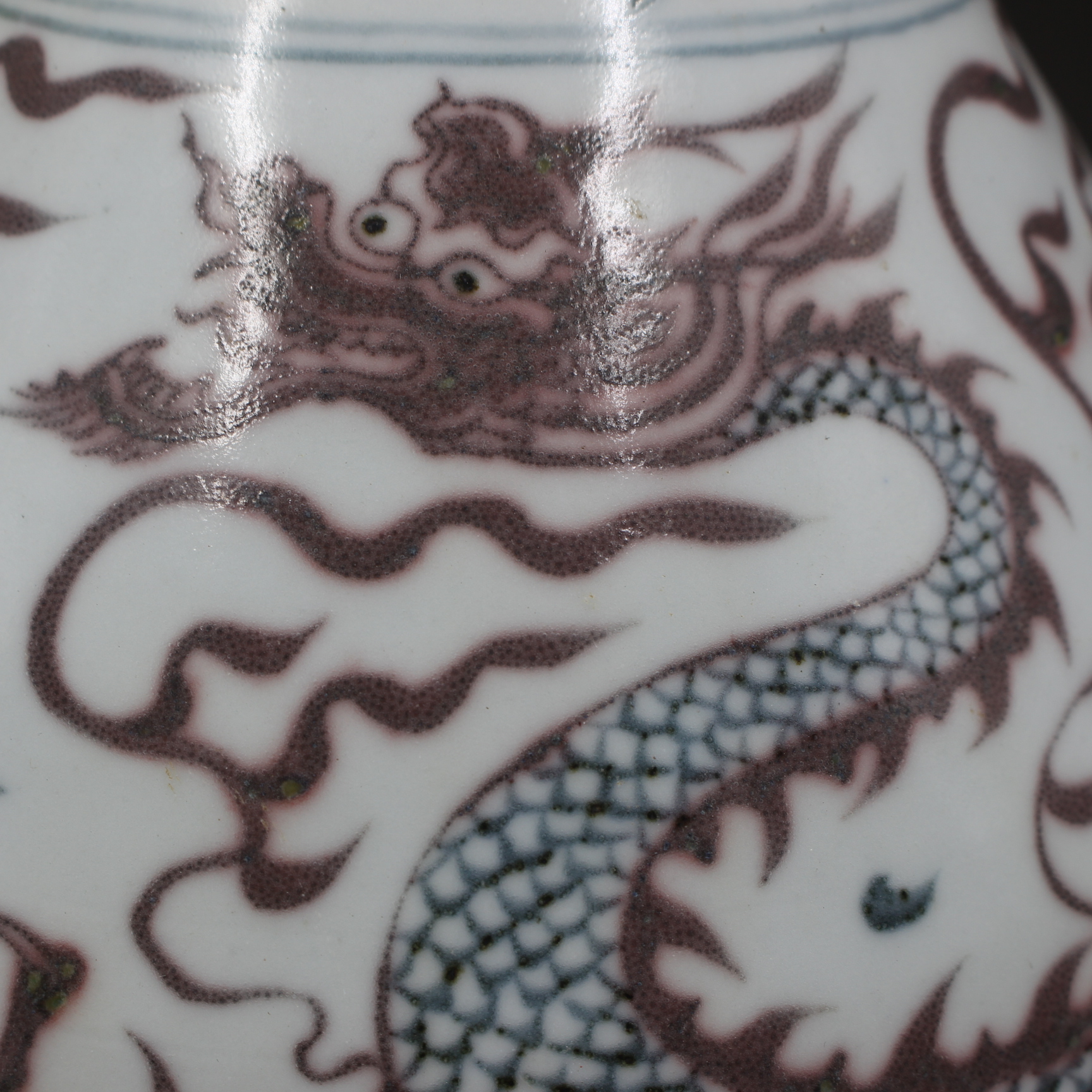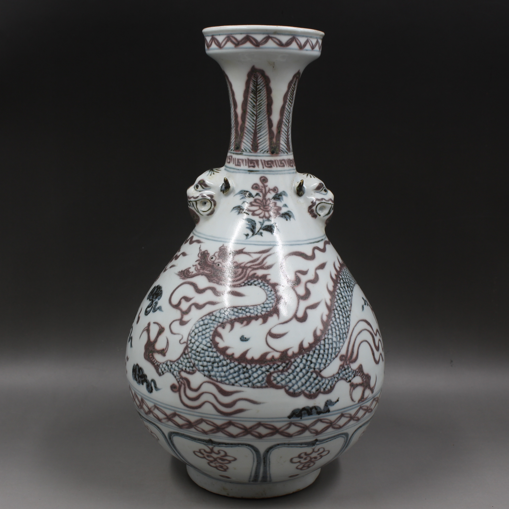 大明青花釉里紅云龍紋玉壺春瓶手繪仿古老貨家居擺件瓷器古董古玩1入