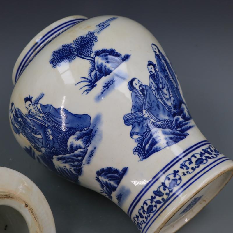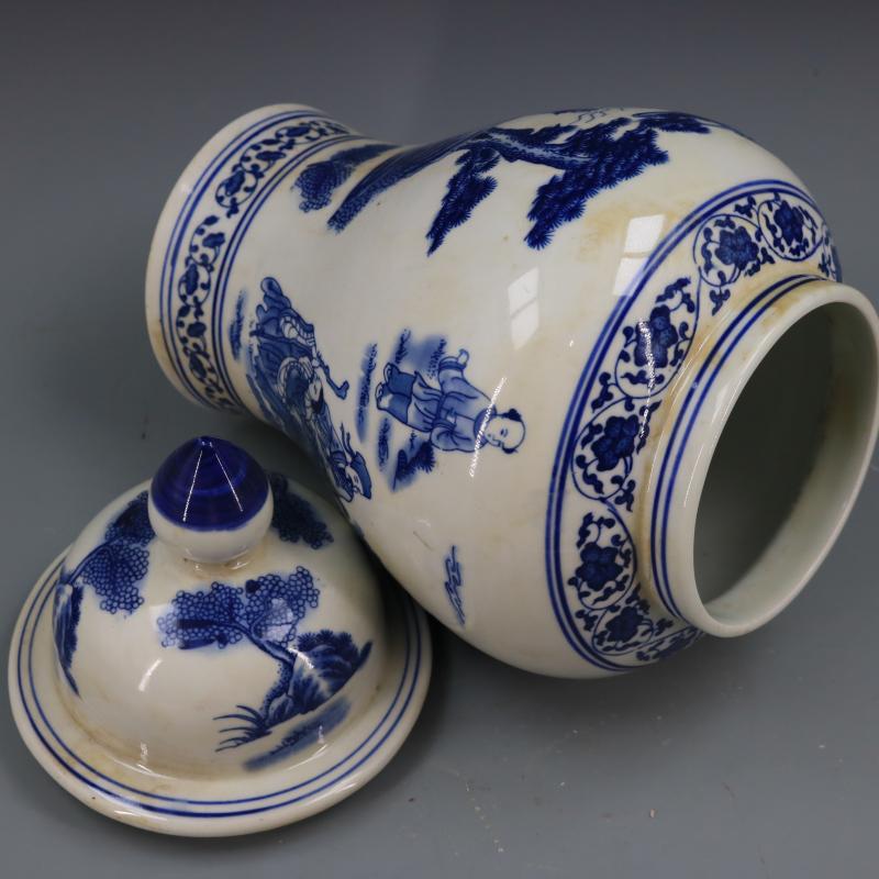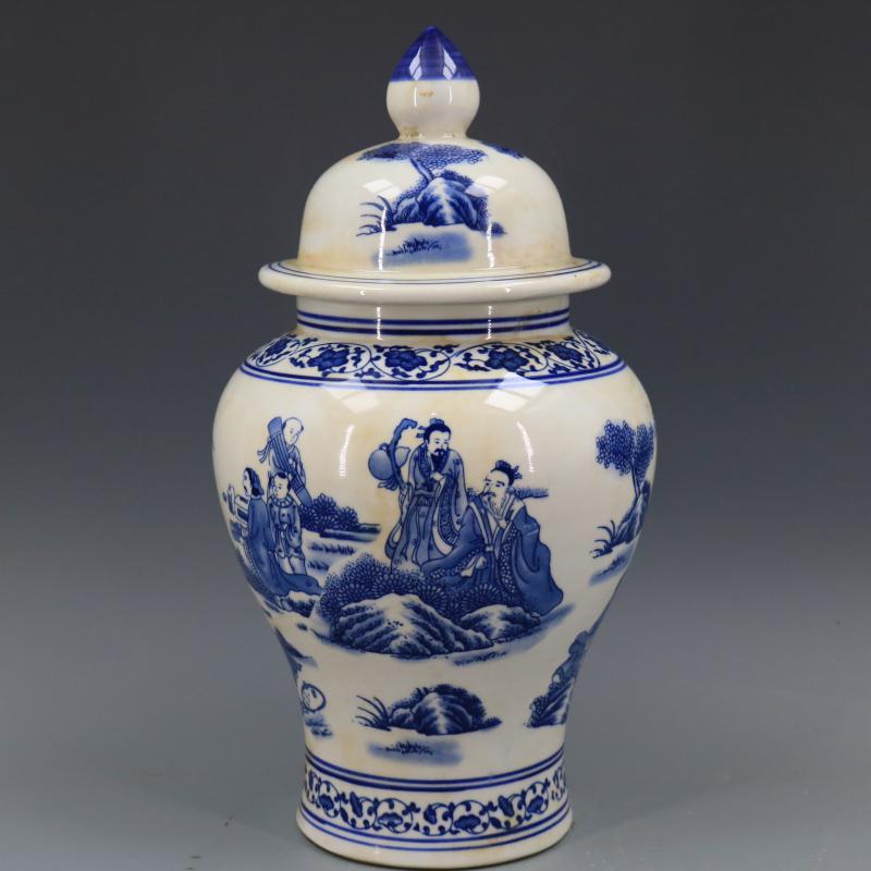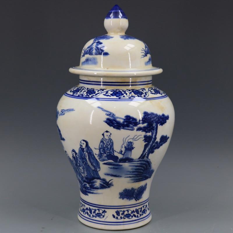 清乾隆青花人物故事將軍罐仿古老貨家用酒店擺件瓷器古董古玩收藏1入